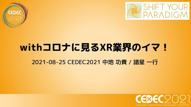 2021/08/25、CEDEC2021にて発表した『withコロナに見るXR業界のイマ!』の講演資料です。