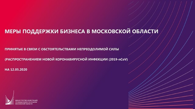 не ограничивать осуществление своей деятельности, за исключением случаев, установленных постановлением Губернатора Московской области от 12.03.2020 № 108-ПГ и (или) иными НПА РФ **Полный перечень видов деятельности организаций и индивидуальных предпринимателей, при осуществлении которых приостанавливается до 31.05.2020 посещение их гражданами, установлен в Приложении 3 к постановлению Губернатора Московской области от 12.03.2020 № 108-ПГ (в редакции №229-ПГ) ***Организации и ИП вправе сохранить присутствие лиц, обеспечивающих охрану и содержание объектов, поддержание процессов, которые не могут быть приостановлены с учетом их технологических особенностей, лиц, обеспечивающих начисление и выплату заработной платы. Все предприятия общепита (кроме доставки заказов, обслуживания навынос, организации питания своих работников) Парков культуры и отдыха, торгово-развлекательных центров, аттракционов, ночных клубов (дискотек), букмекерских контор, тотализаторов и их пунктов приема ставок, кинотеатров (кинозалов), детских игровых комнат и детских развлекательных центров, иных развлекательных и досуговых заведений, услуг бань и душевых, прием от физических лиц лома и отходов цветных металлов До отмены режима повышенной готовности приостановлена работа Услуги по краткосрочной аренде автомобилей (услуг каршеринга) Салоны красоты, массажные студии, СПА-салоны, фитнес-клубы, солярии, иные предприятия подобных услуг при очном присутствии клиента (за исключением услуг, оказываемых дистанционным способом, в том числе с условием доставки) Магазины розничной торговли (кроме аптек, магазинов медицинских и оптико-офтальмологических изделий, продуктовых магазинов и магазинов товаров первой необходимости, зоотоваров, салонов мобильной связи и средств связи, интернет-магазинов, в том числе с услугой доставки заказов, магазинов строительных и отделочных материалов и товаров для сада, точек продажи средств защиты на остановках общественного транспорта) Запрещено проведение любых спортивных, зрелищных, массовых мероприятий (соревнований, концертов и т.д.) 3