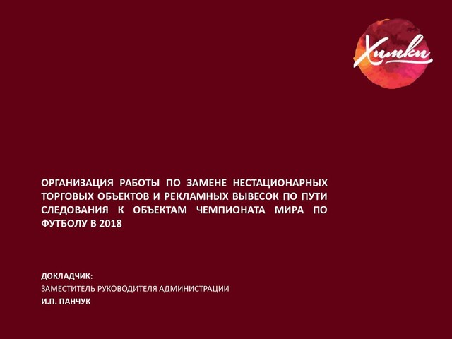 ВЫВЕСОК ПО ПУТИ СЛЕДОВАНИЯ К ОБЪЕКТАМ ЧЕМПИОНАТА МИРА ПО ФУТБОЛУ В 2018 Панчук И.П. 1. Урна нового образца 2. Красная тротуарная плитка 3. Желтая тактильная плитка 4. Пандус при необходимости 5. Светильники 6. Кашпо 7. Светодиодная подсветка фасадов 8. Вывеска (световой короб или световые буквы) 9. Флагшток