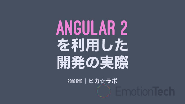 12月15日@ヒカラボ https://career.levtech.jp/hikalab/event/detail/72/ 発表スライドです。 Angular 2 の実際についてフレームワークの選定から簡単な事例の紹介まで。