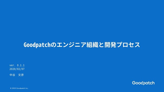 Goodpatchのエンジニア組織と開発プロセス © 2020 Goodpatch Inc. ver. 0.1.1 2020/02/07 中⾕ ⽂彦