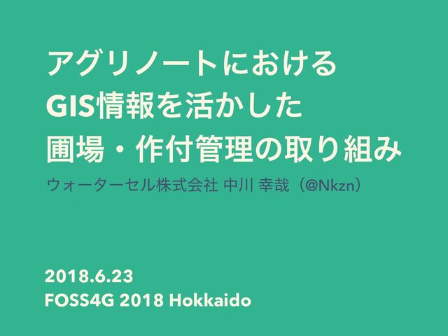 ΞάϦϊʔτʹ͓͚Δ GISใΛ׆͔ͨ͠ ะɾ࡞ཧͷऔΓΈ Υʔλʔηϧגࣜձࣾ த ࠸ʢ@Nkznʣ 2018.6.23 FOSS4G 2018 Hokkaido
