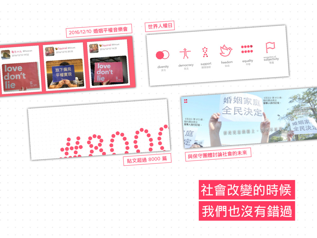 2016/12/10 婚姻平權音樂會 世界㆟權㈰ 貼文超過 8000 篇 與保守團體討論㈳會的未來 ㈳會改變的時候 我們也沒㈲錯過