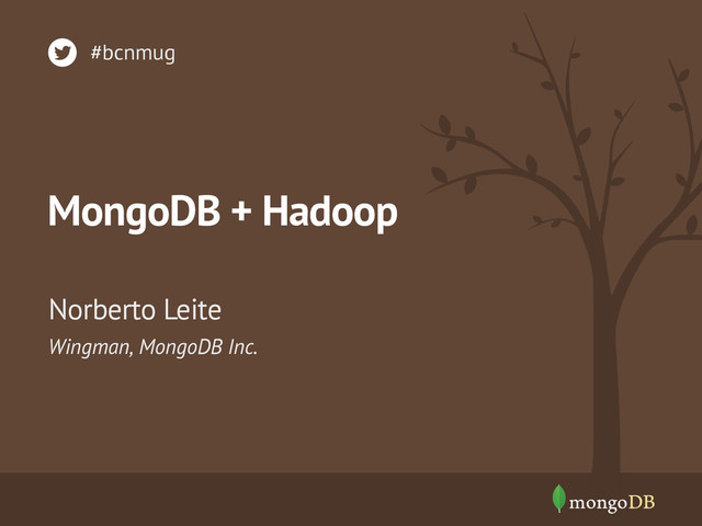 MongoDB and Hadoop • “Give power to the people” • Allows processing across multiple sources • Avoid custom hacky exports and imports • Scalability and Flexibility to accommodate Hadoop and|or MongoDB changes