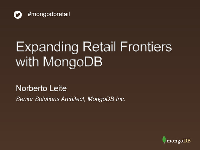 by MongoDB Case Study Problem Why MongoDB Results • RDBMS poorly- equipped to handle varying data types (e.g., SKUs, images) • Inefficient use of storage in RDBMS (i.e., 90% empty columns) • Complex joins degraded performance • Document-oriented model less complex, easier to code • Single data store for structured, semi-structured and unstructured data • Scalability and availability • Analytics with MapReduce • Decreased supplier onboard time by 12x • Grew from 400K records to 40M in 12 months • Significant cost reductions on schema design time, ongoing developer effort, and storage usage