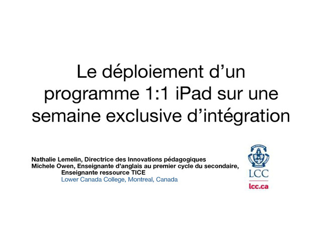 utiliser leur tablette lors de la première journée officielle de cours. - Généralement, nos élèves sont d’excellent citoyens numériques! - L’attitude (mindset) face à l’apprentissage est aussi remarquable. Nouveautés: - Apple ID - One Drive - Les iPads seront remis à la case 0 avant d’arriver à l’école - Ajout d’un atelier de gestion (Google Drive) - Ajout de soutien technique (enseignants libérés et escouade) - Formation en citoyenneté numérique continue - Ajout d’un atelier sur la maitrise du clavier (app Ed Club) - Davantage de communication avec les parents - Journée « refresh » de l’intégration en février