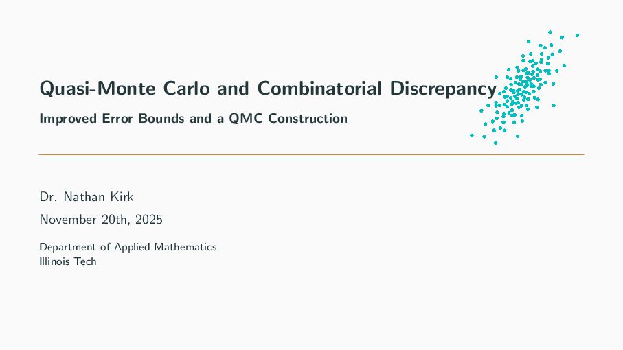 - Department of Applied Mathematics, Computational Mathematics Seminar at Illinois Institute of Technology on Nov 20th, 2025