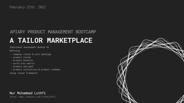#2 Definine 7 company vision & core ideolog5 7 product visio@ 7 product benefitE 7 north star metriU 7 product end goaI 7 product initiatives & product roadmap using vision framework https://www.linkedin.com/in/nmluthfi/ Nur Muhammad Luthfi February 22th, 2022