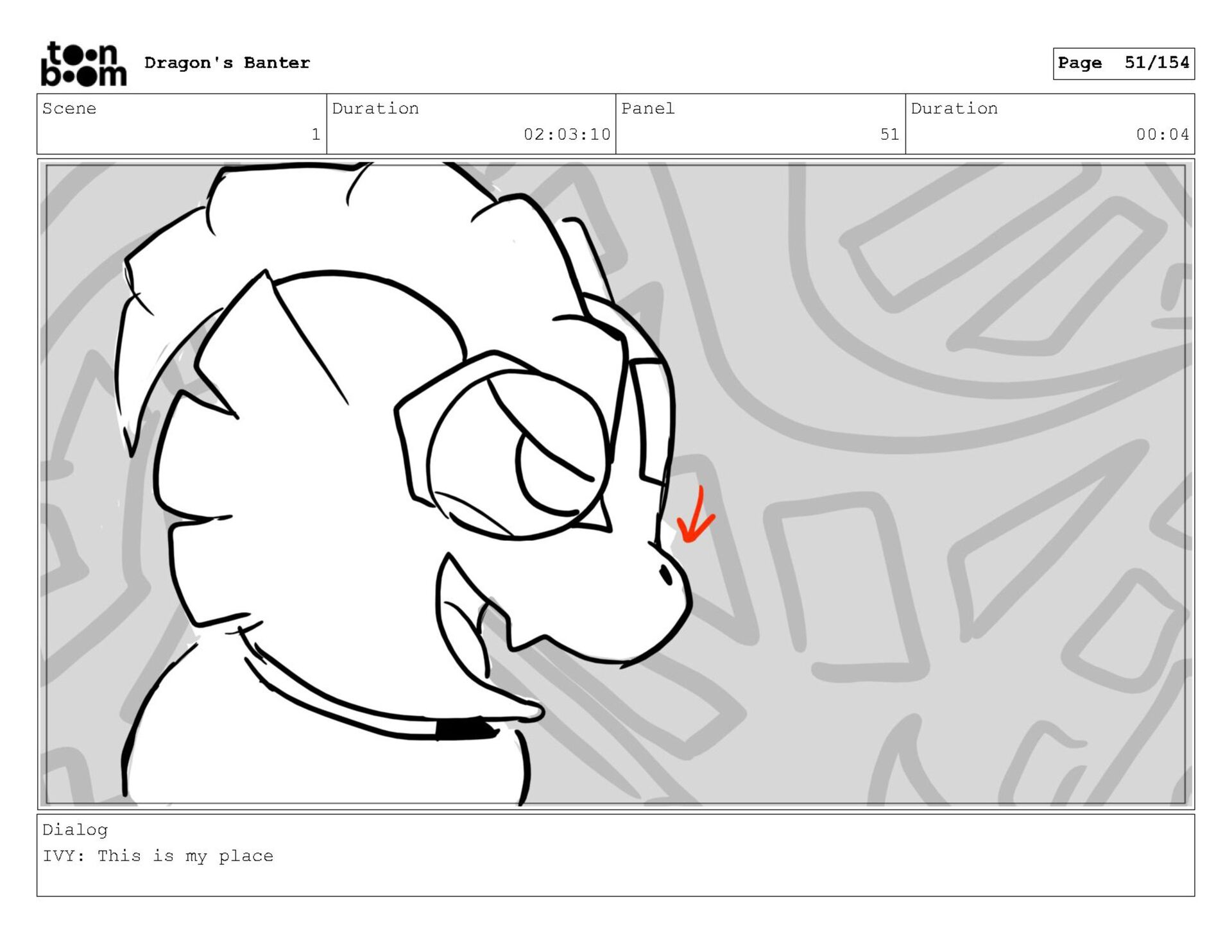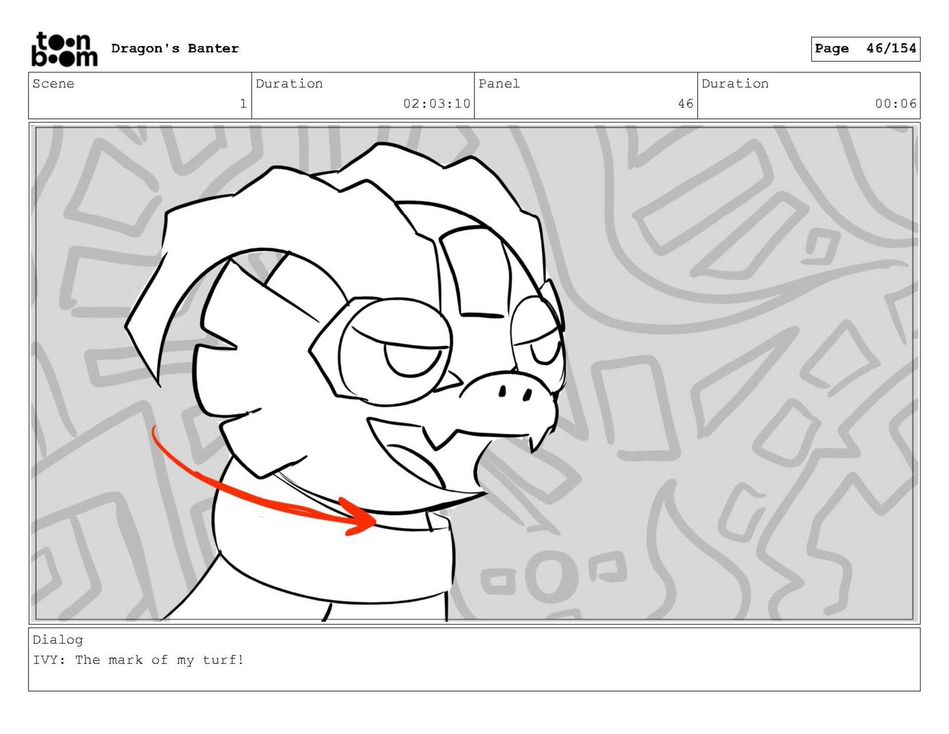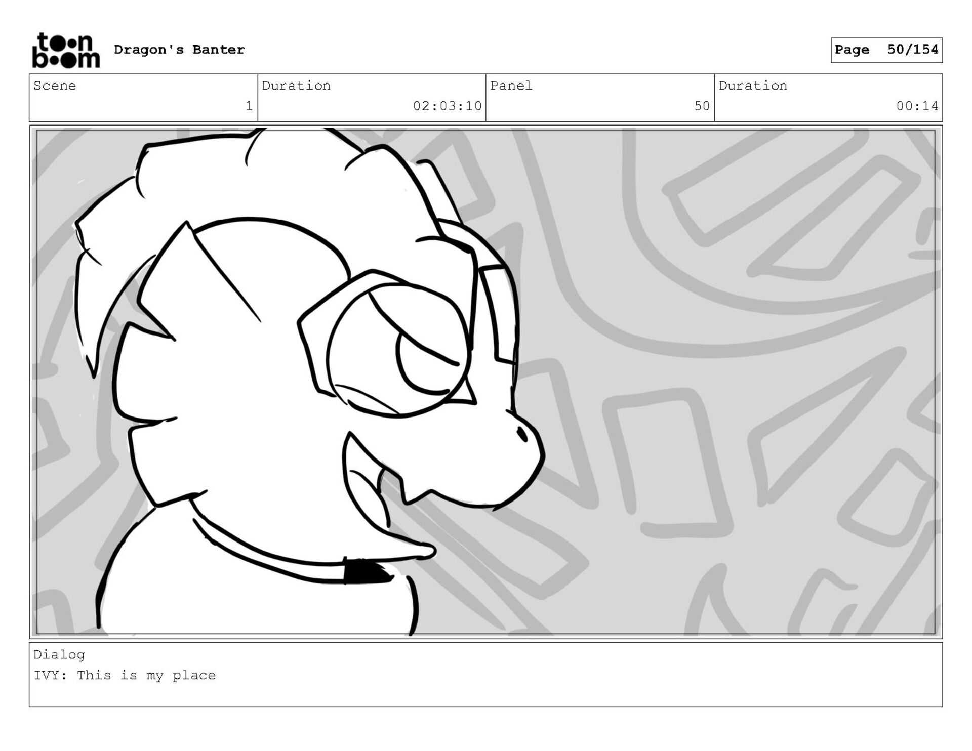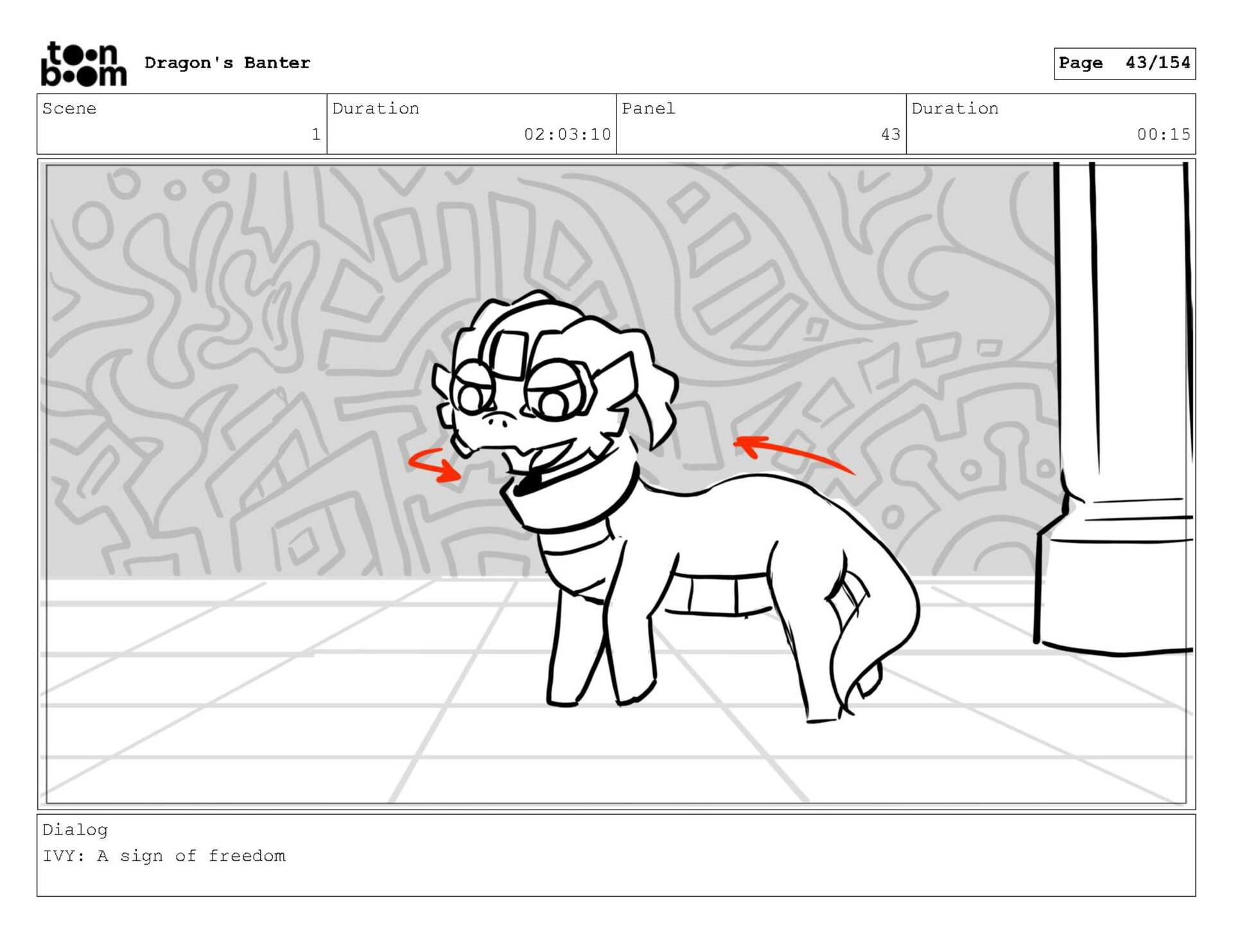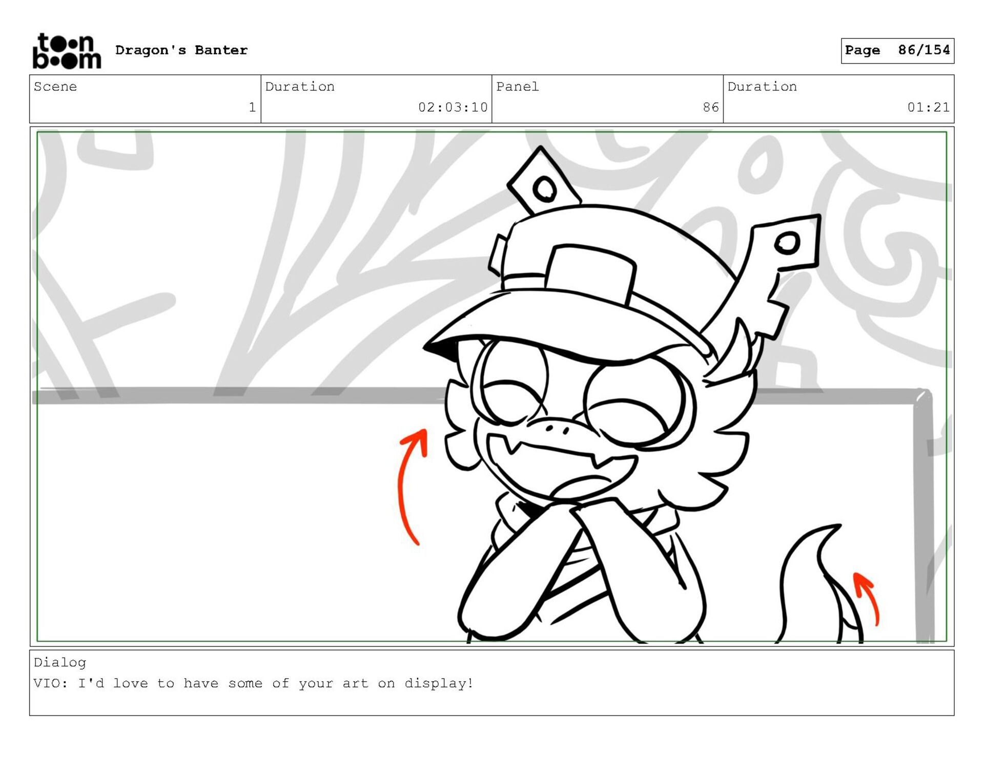 Storyboard produced for a University project, a comedic conversation exchange between two dragons about some fascinating markings on the walls. Featuring an original script and character designs.