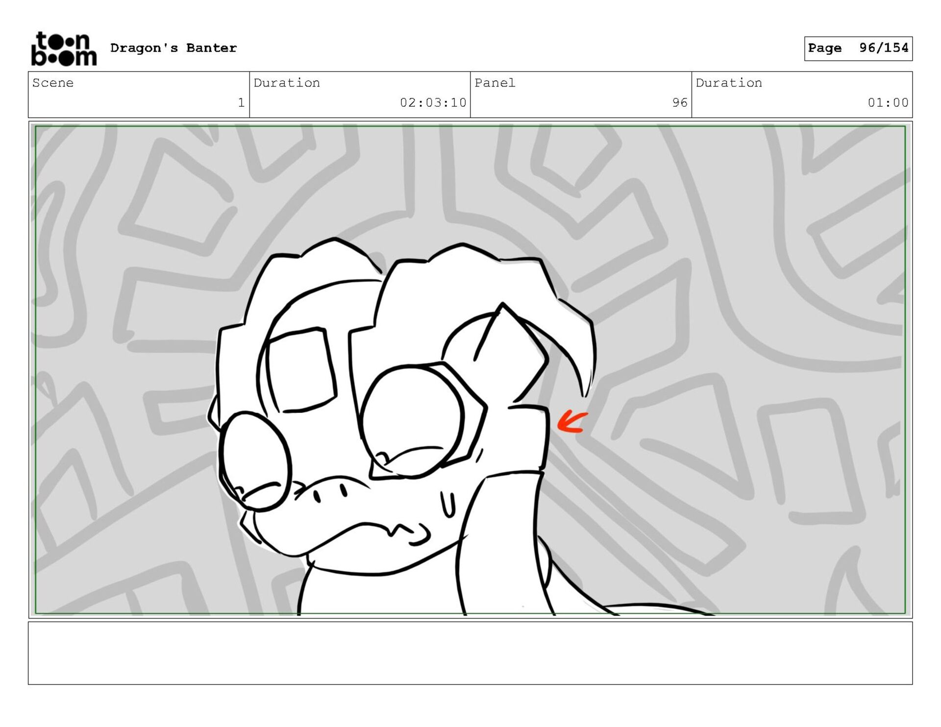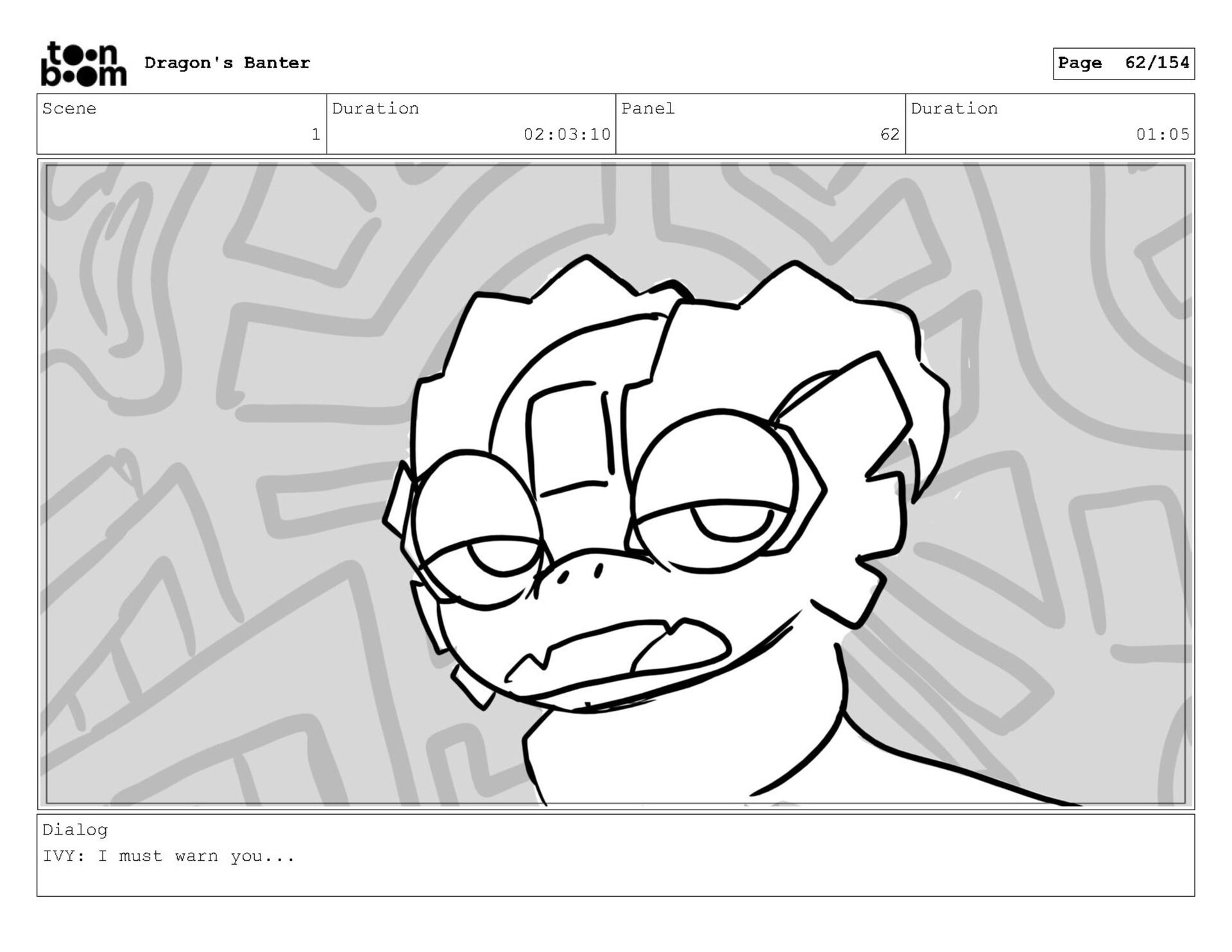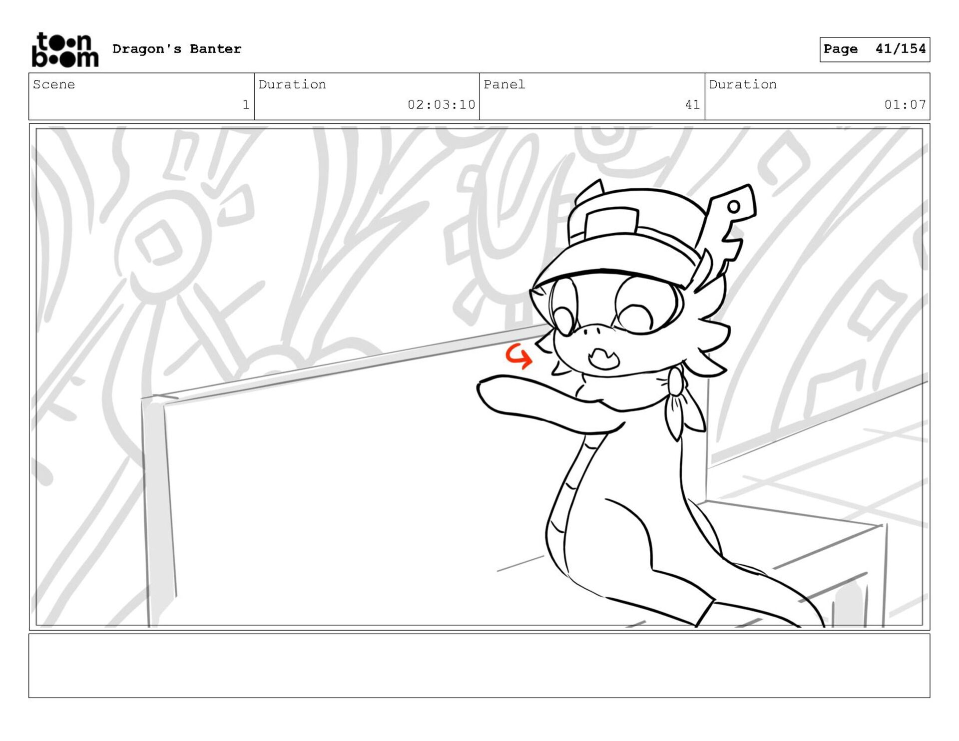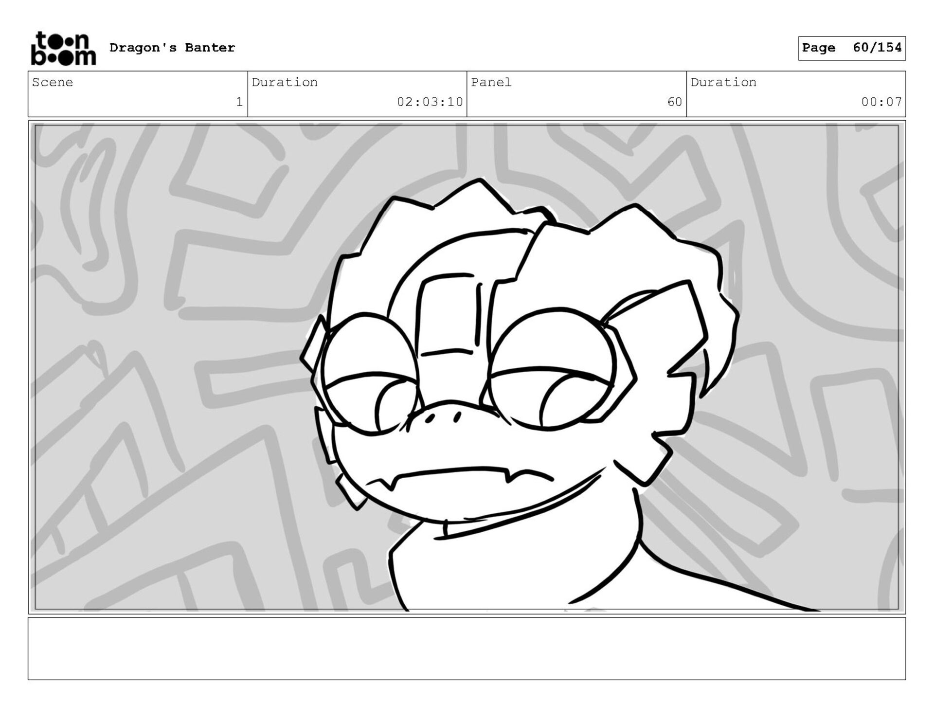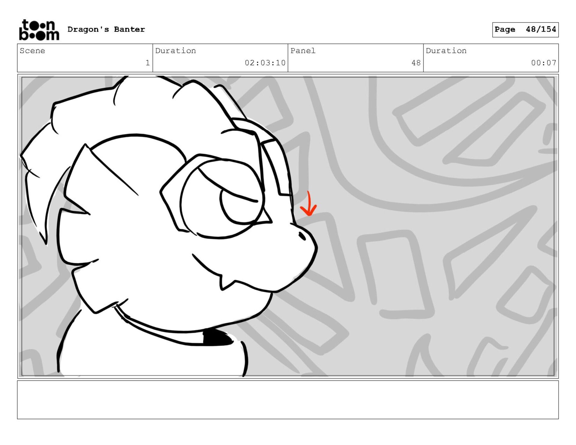 Storyboard produced for a University project, a comedic conversation exchange between two dragons about some fascinating markings on the walls. Featuring an original script and character designs.