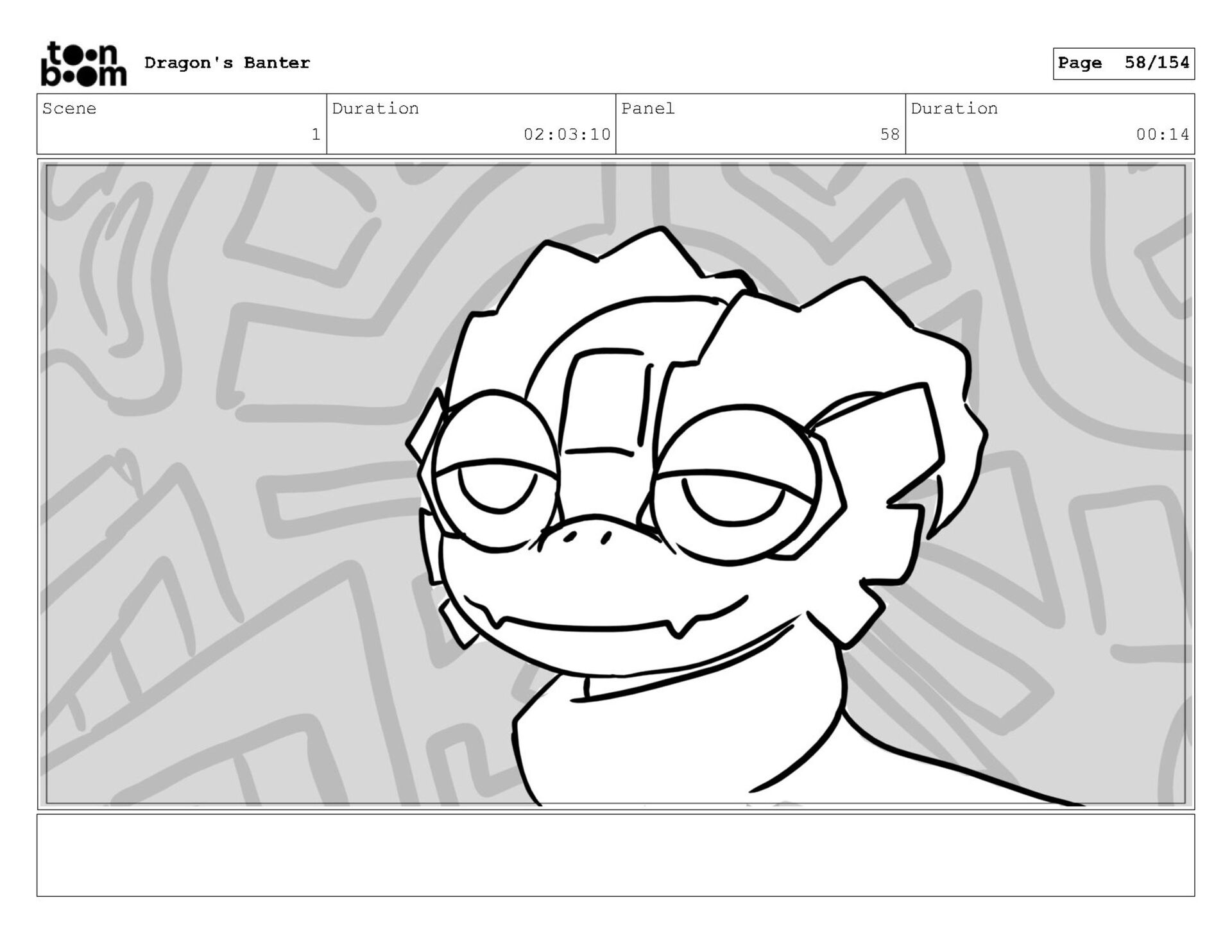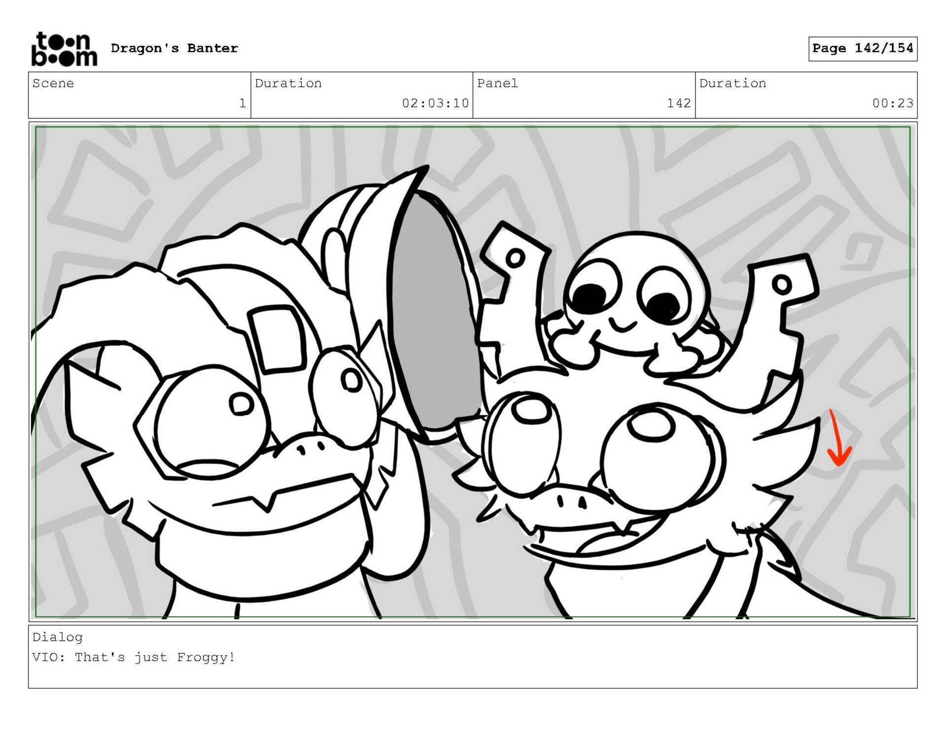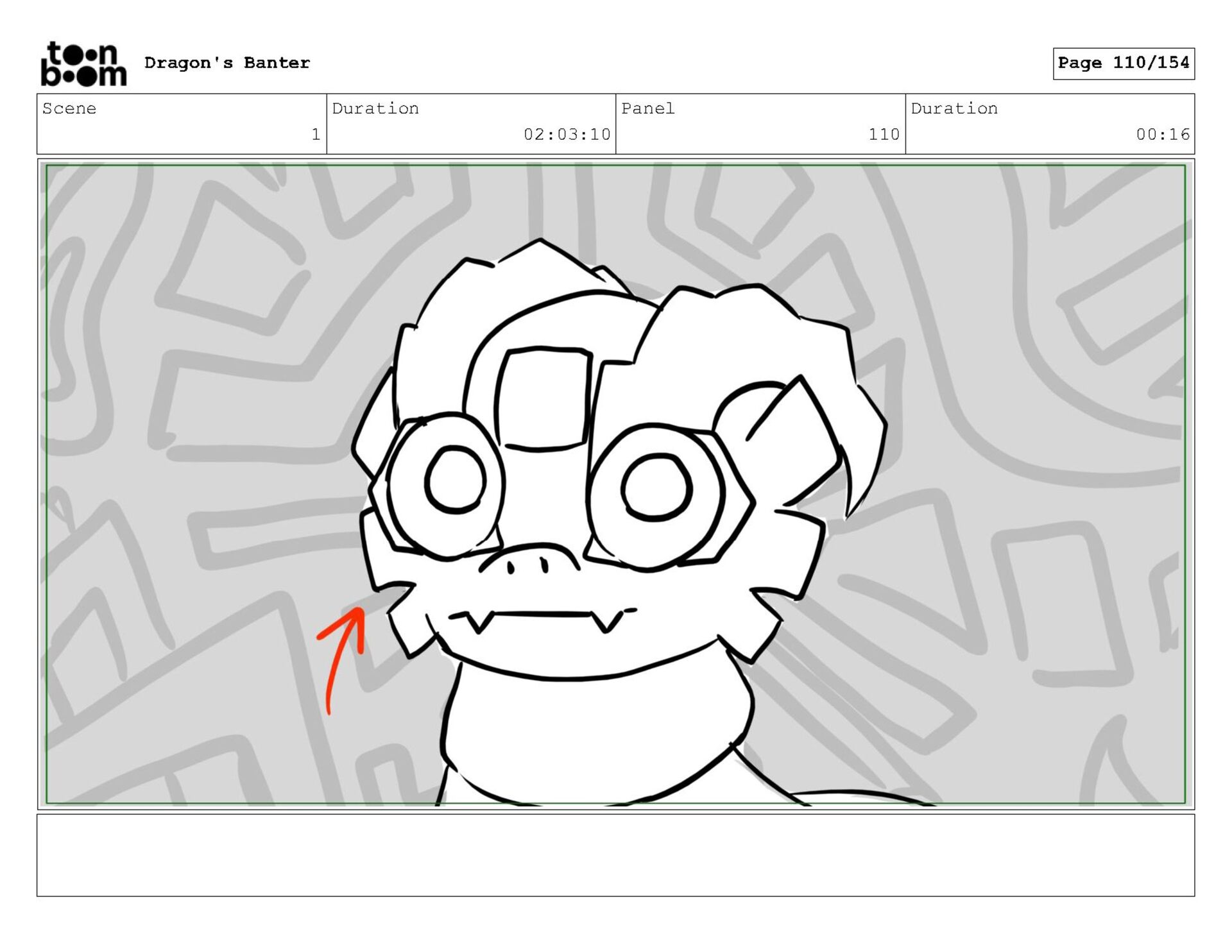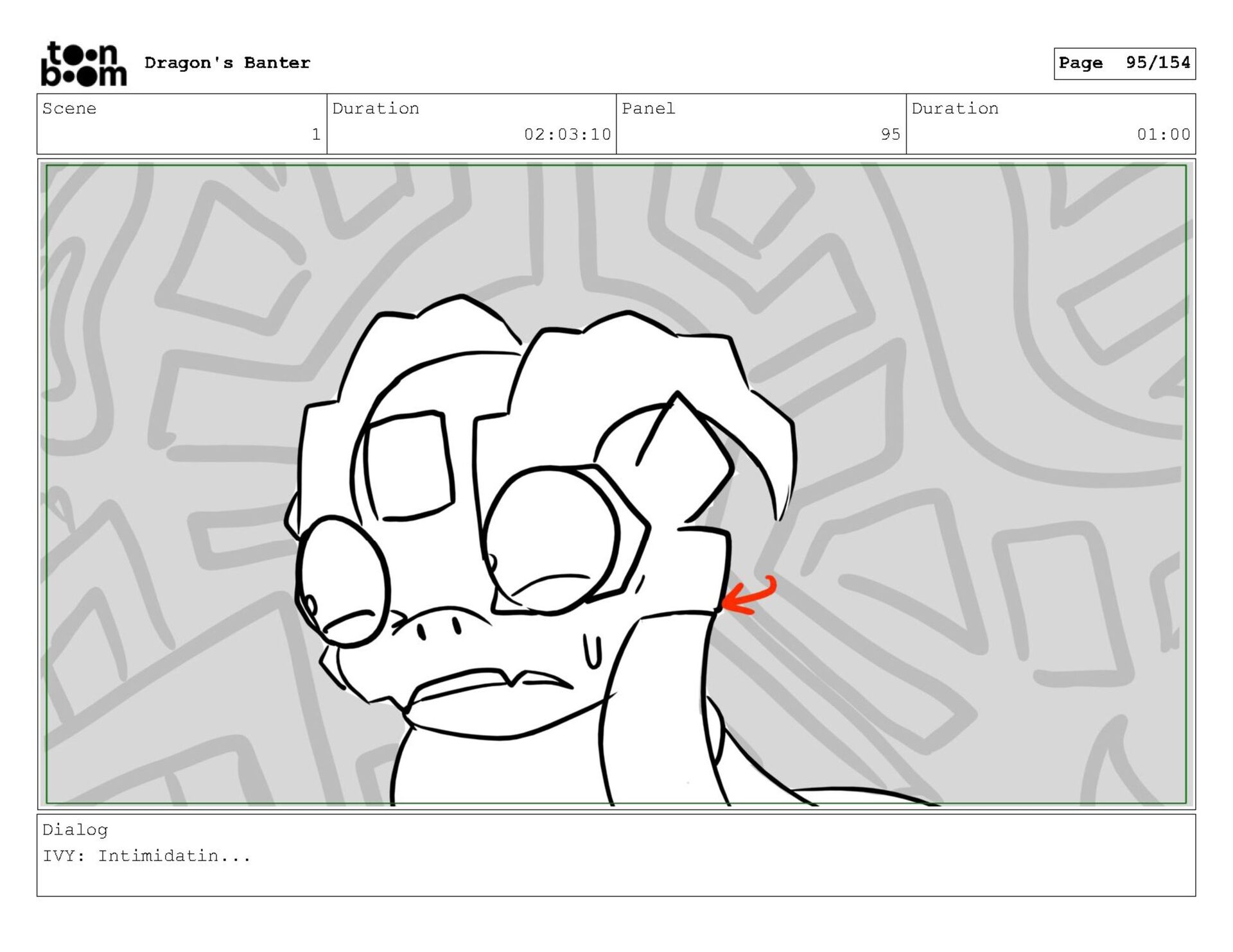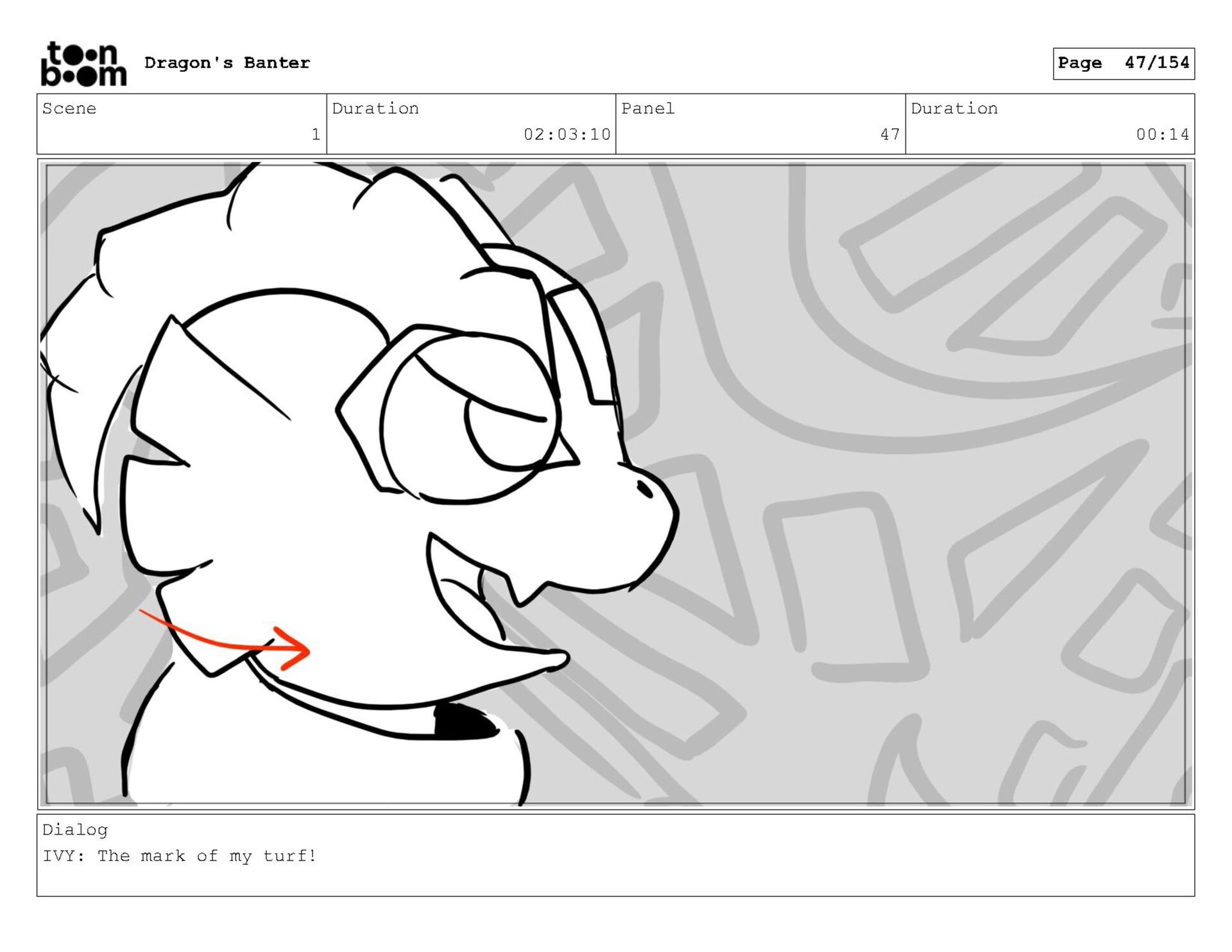 Storyboard produced for a University project, a comedic conversation exchange between two dragons about some fascinating markings on the walls. Featuring an original script and character designs.