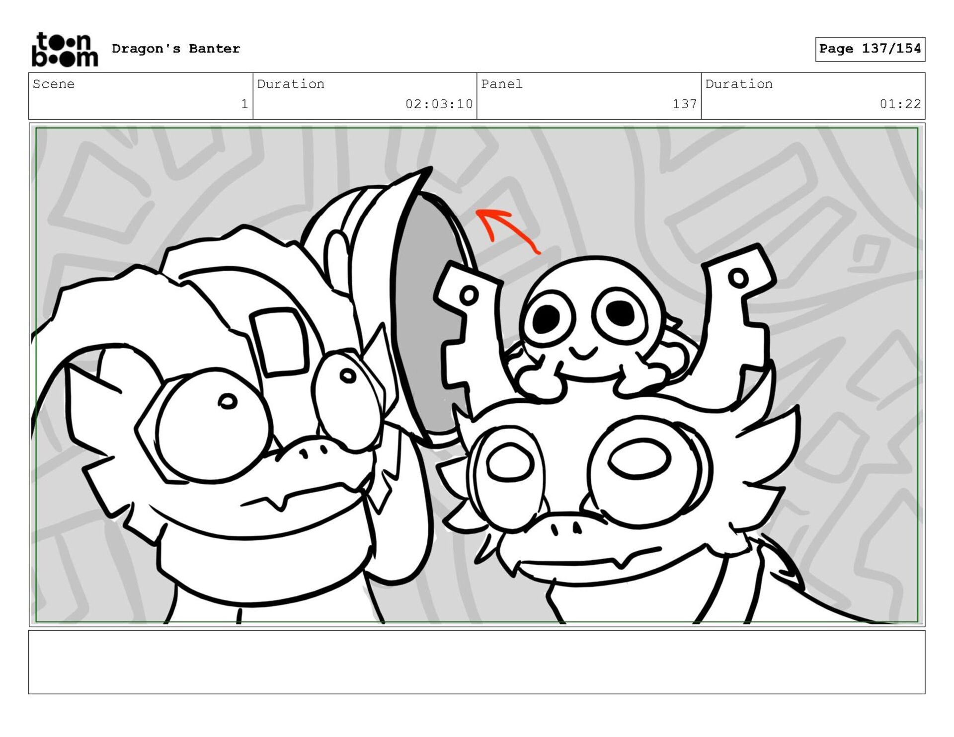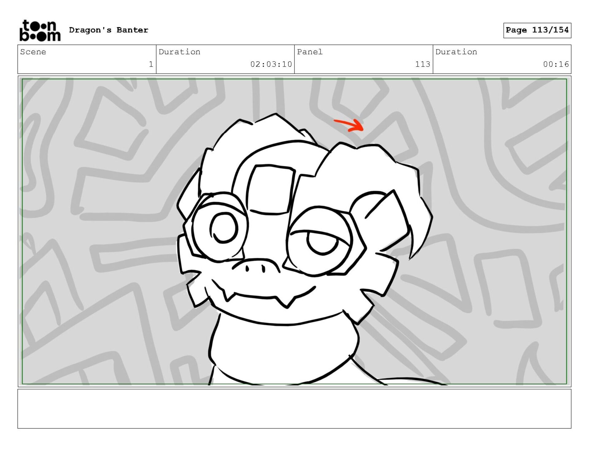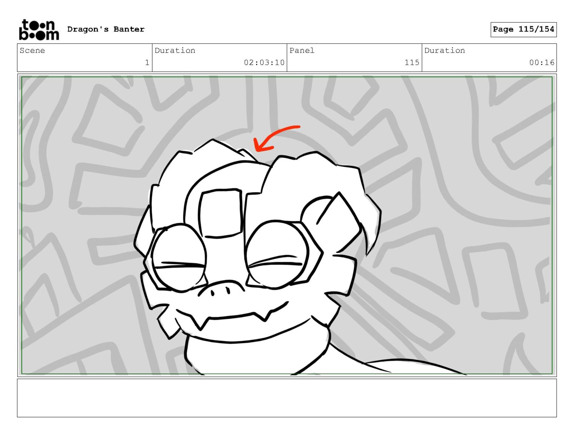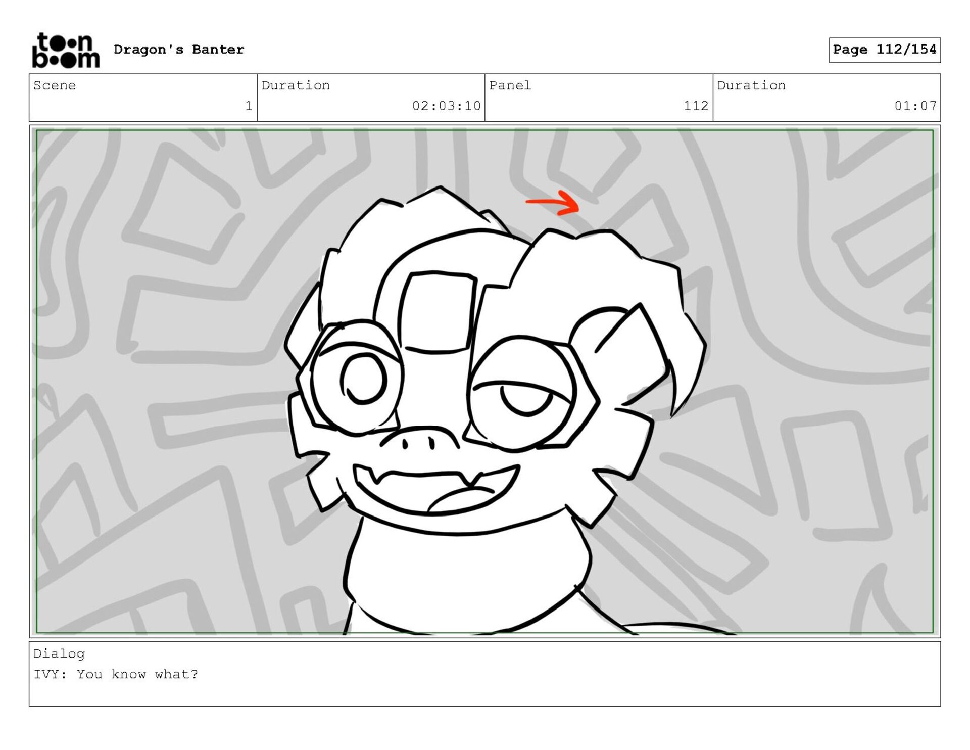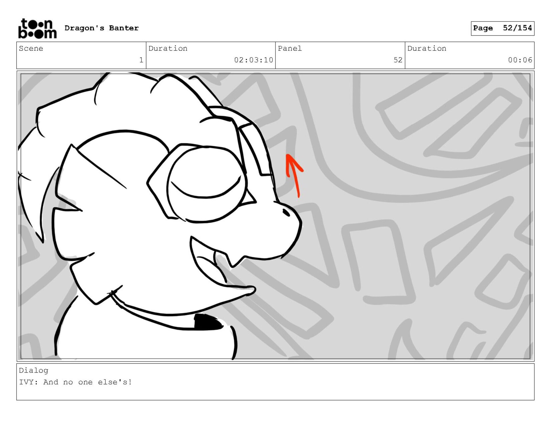 Storyboard produced for a University project, a comedic conversation exchange between two dragons about some fascinating markings on the walls. Featuring an original script and character designs.