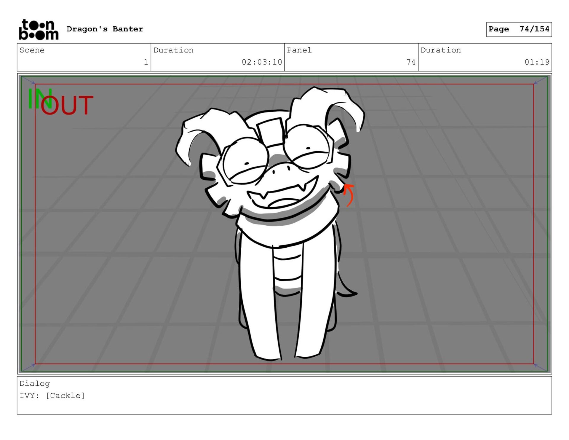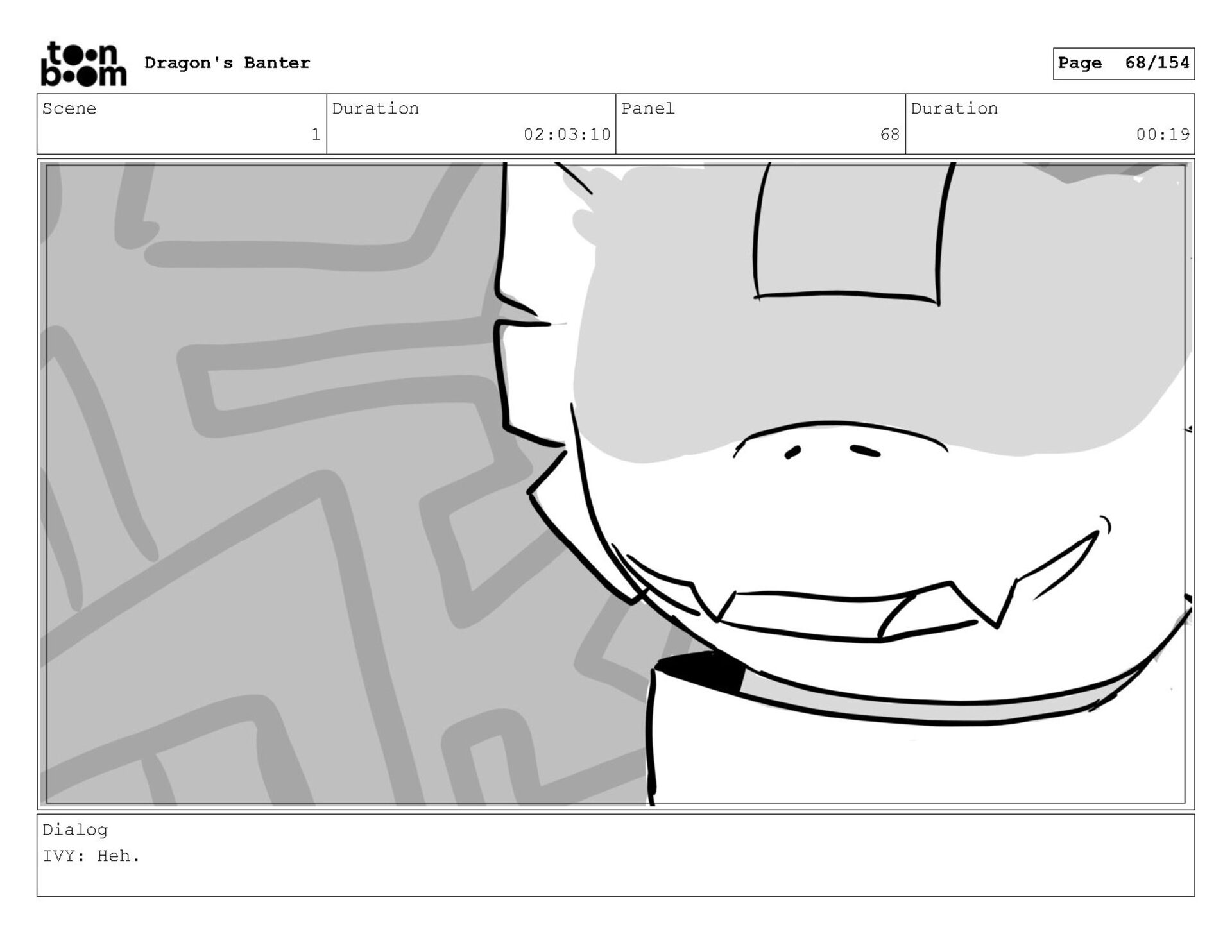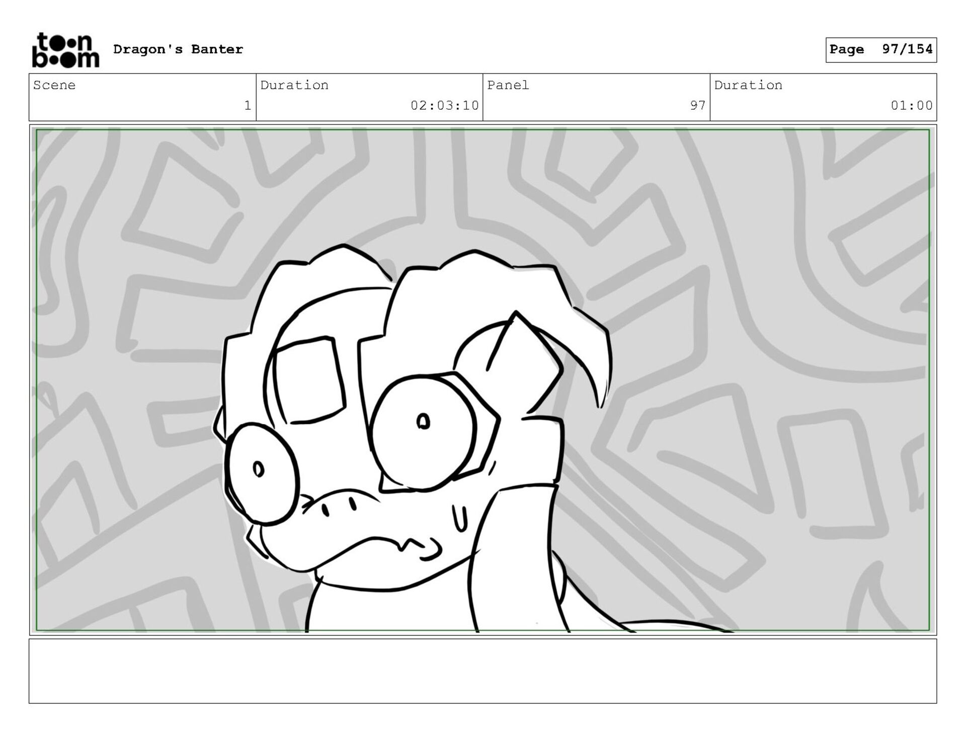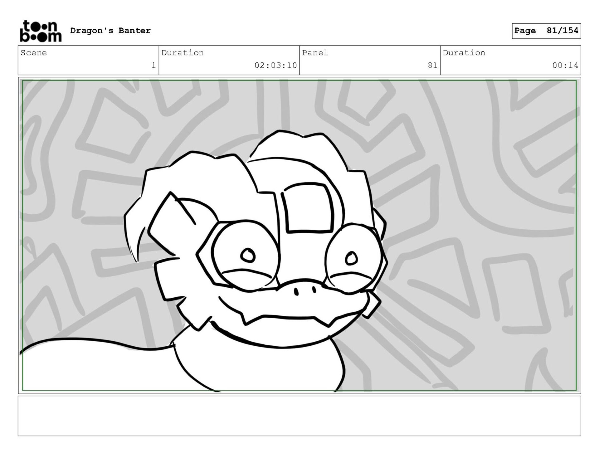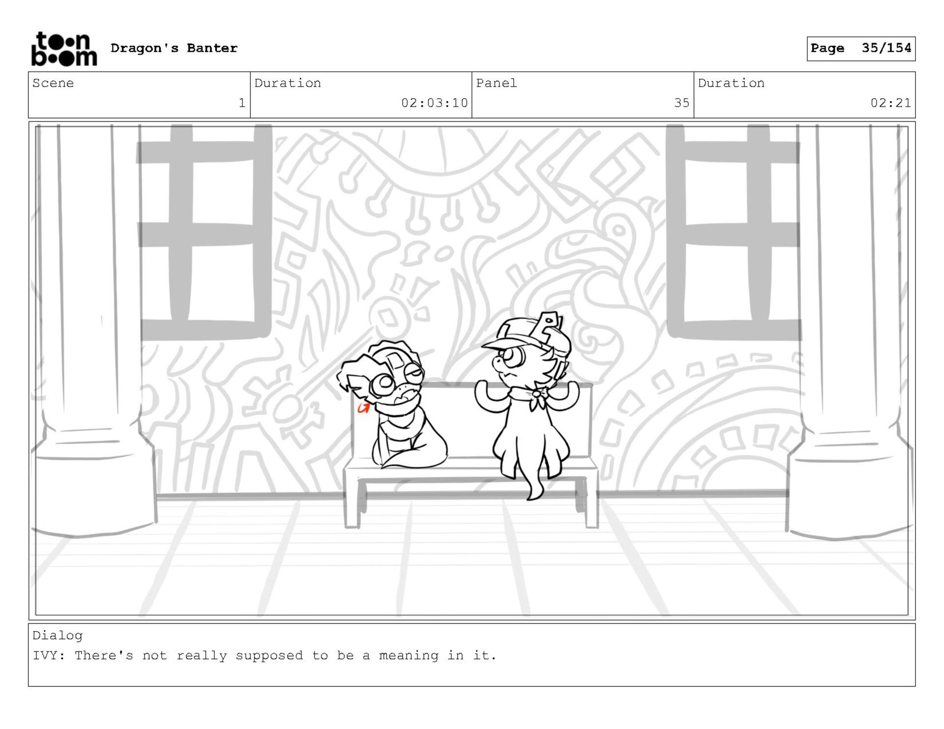 Storyboard produced for a University project, a comedic conversation exchange between two dragons about some fascinating markings on the walls. Featuring an original script and character designs.