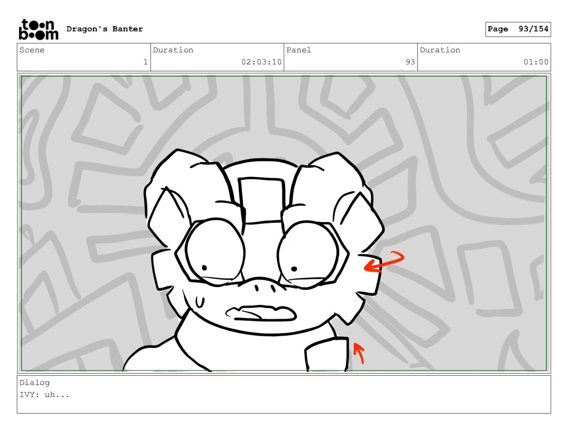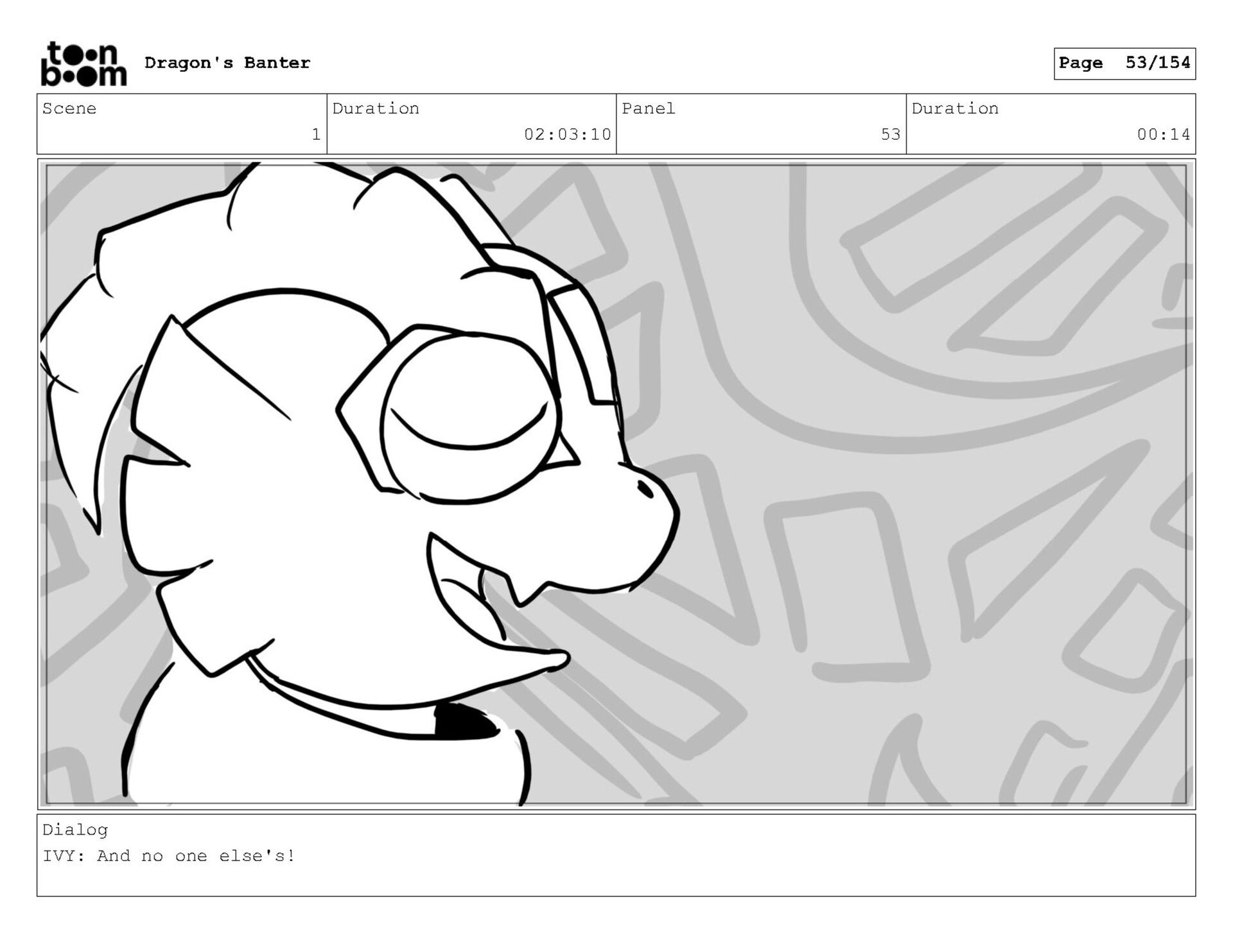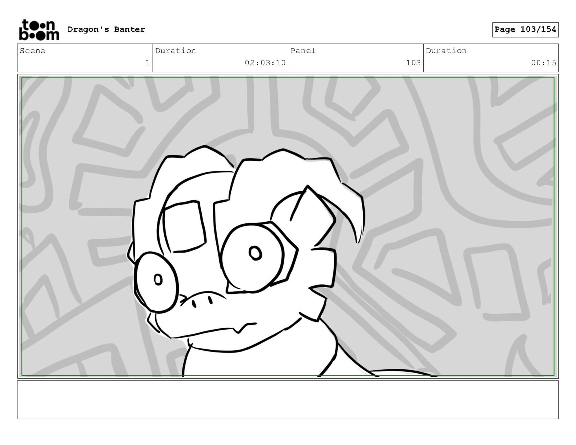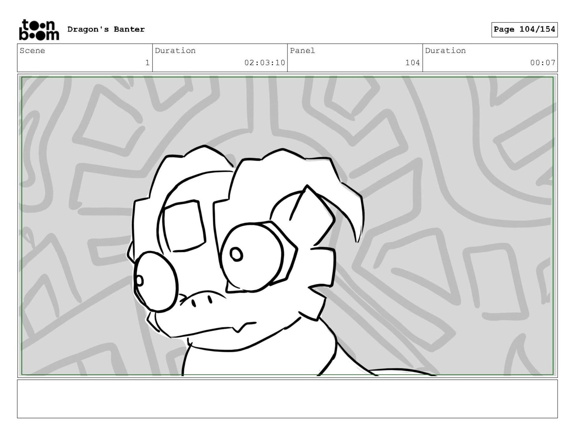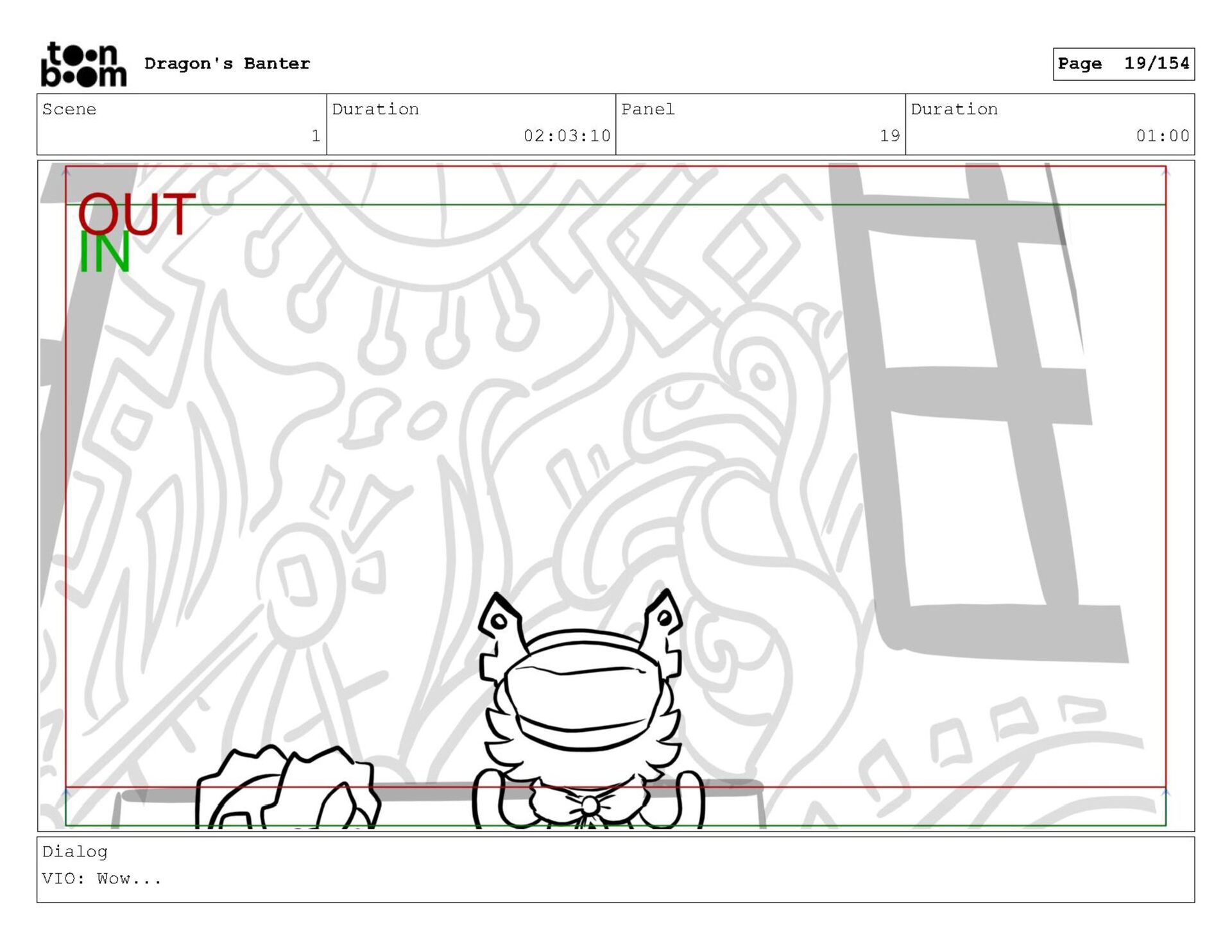 Storyboard produced for a University project, a comedic conversation exchange between two dragons about some fascinating markings on the walls. Featuring an original script and character designs.