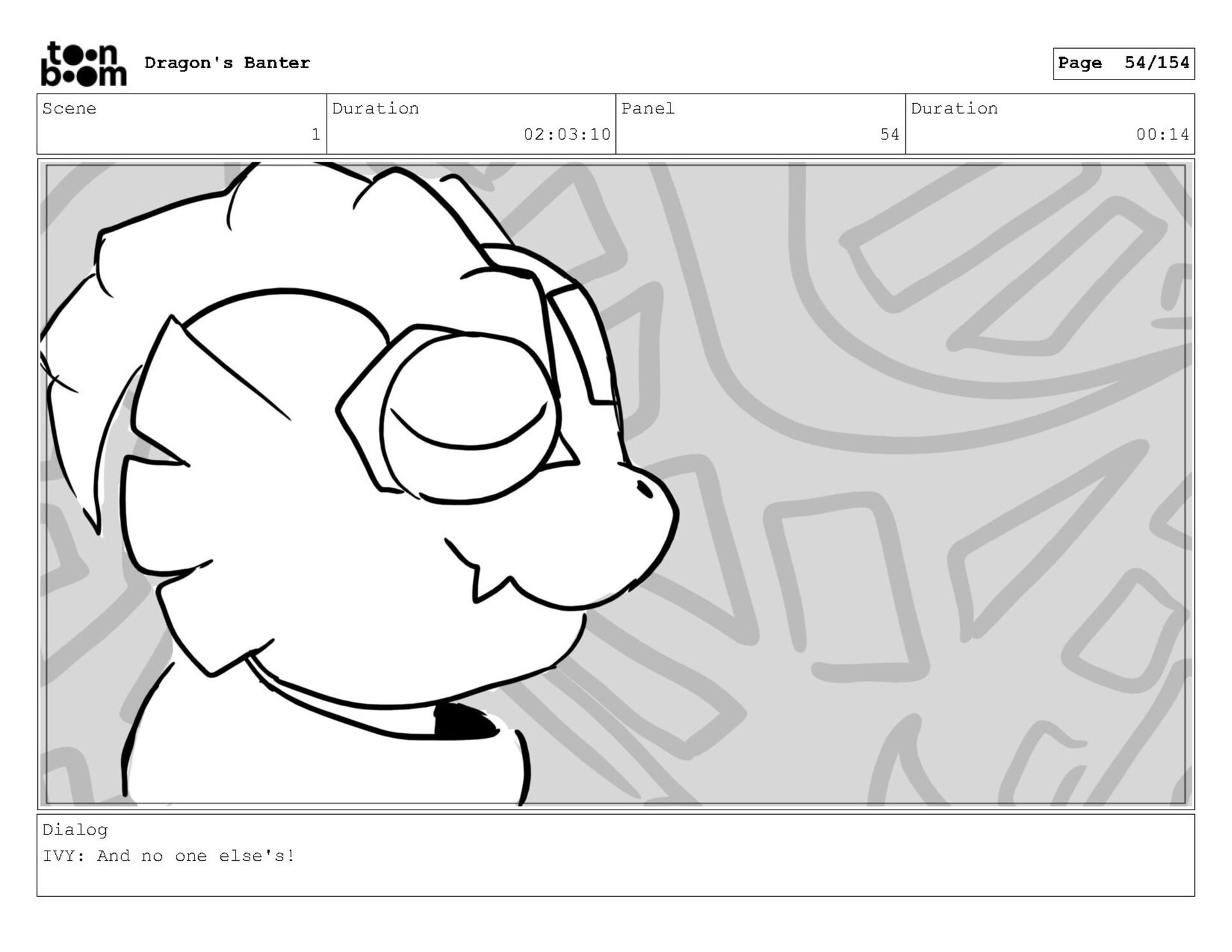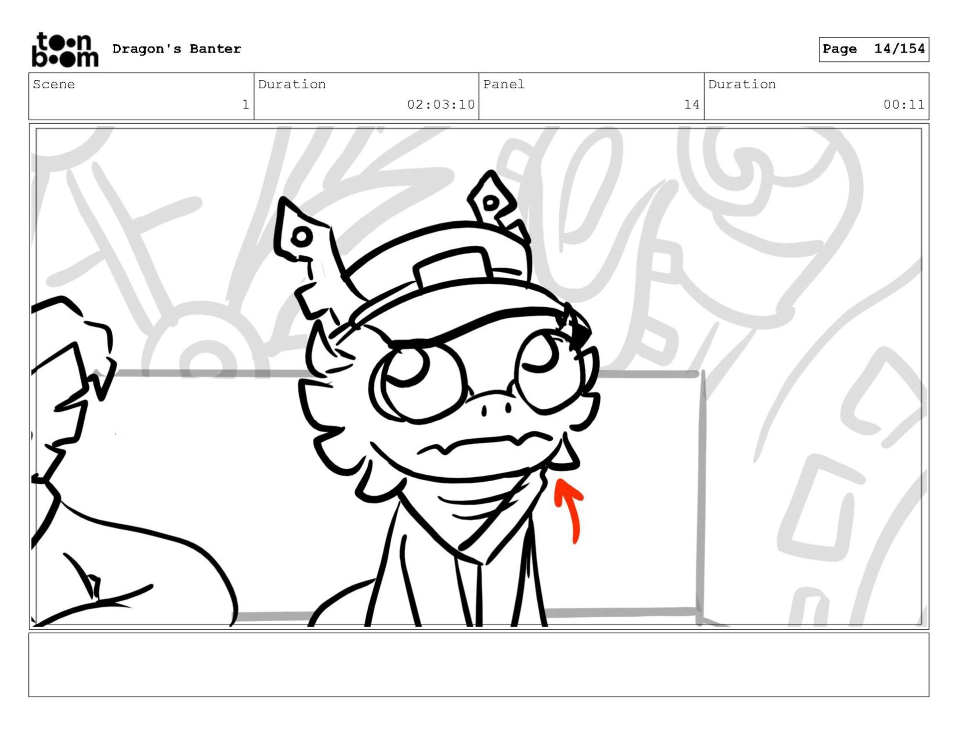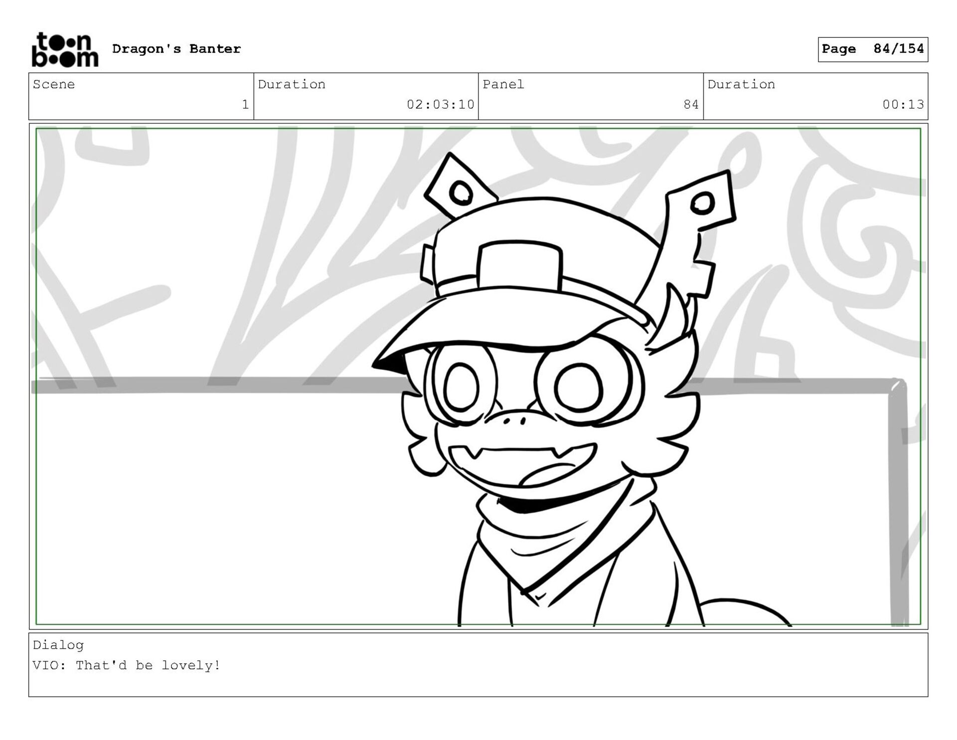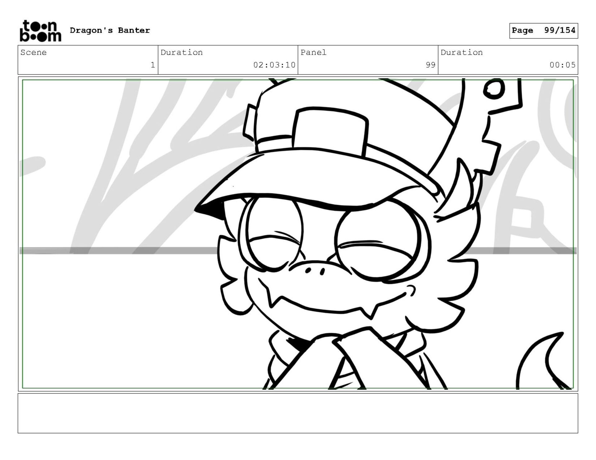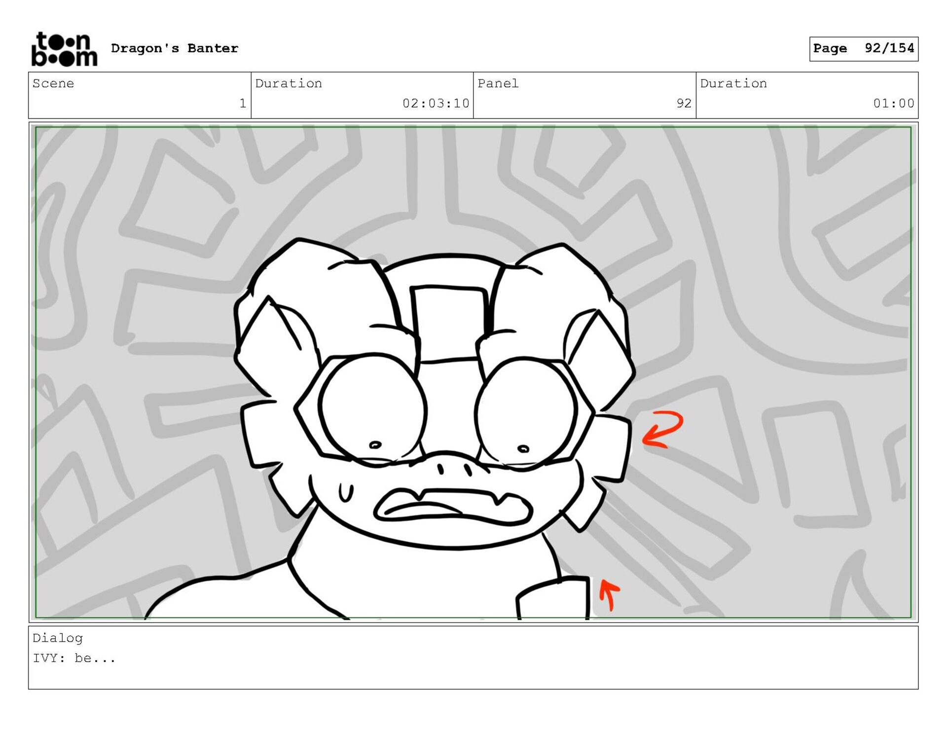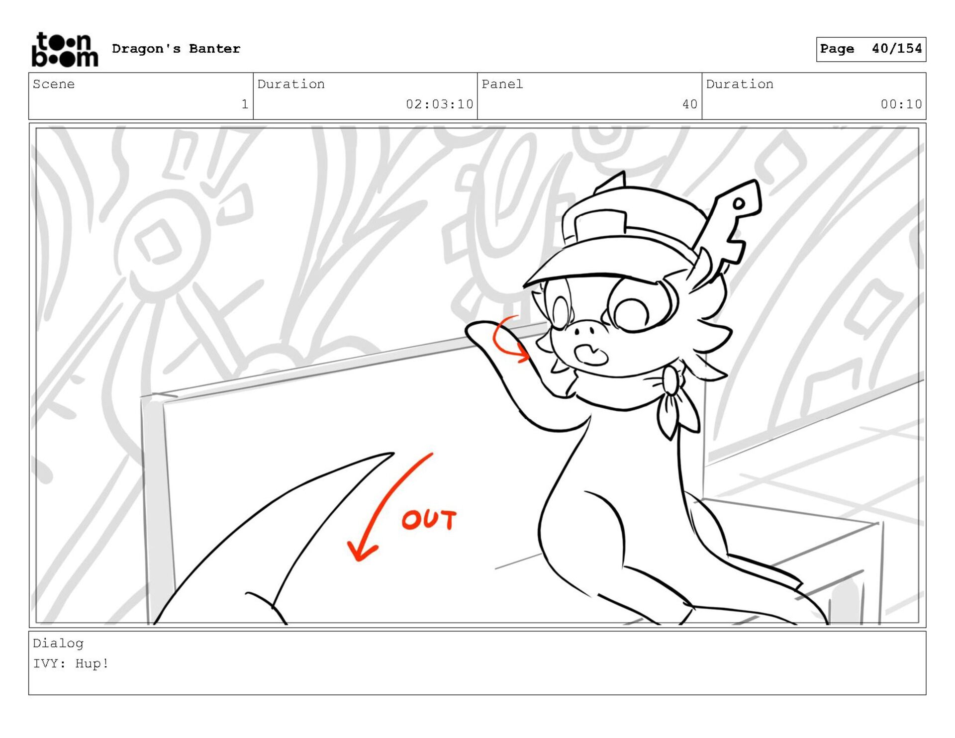 Storyboard produced for a University project, a comedic conversation exchange between two dragons about some fascinating markings on the walls. Featuring an original script and character designs.