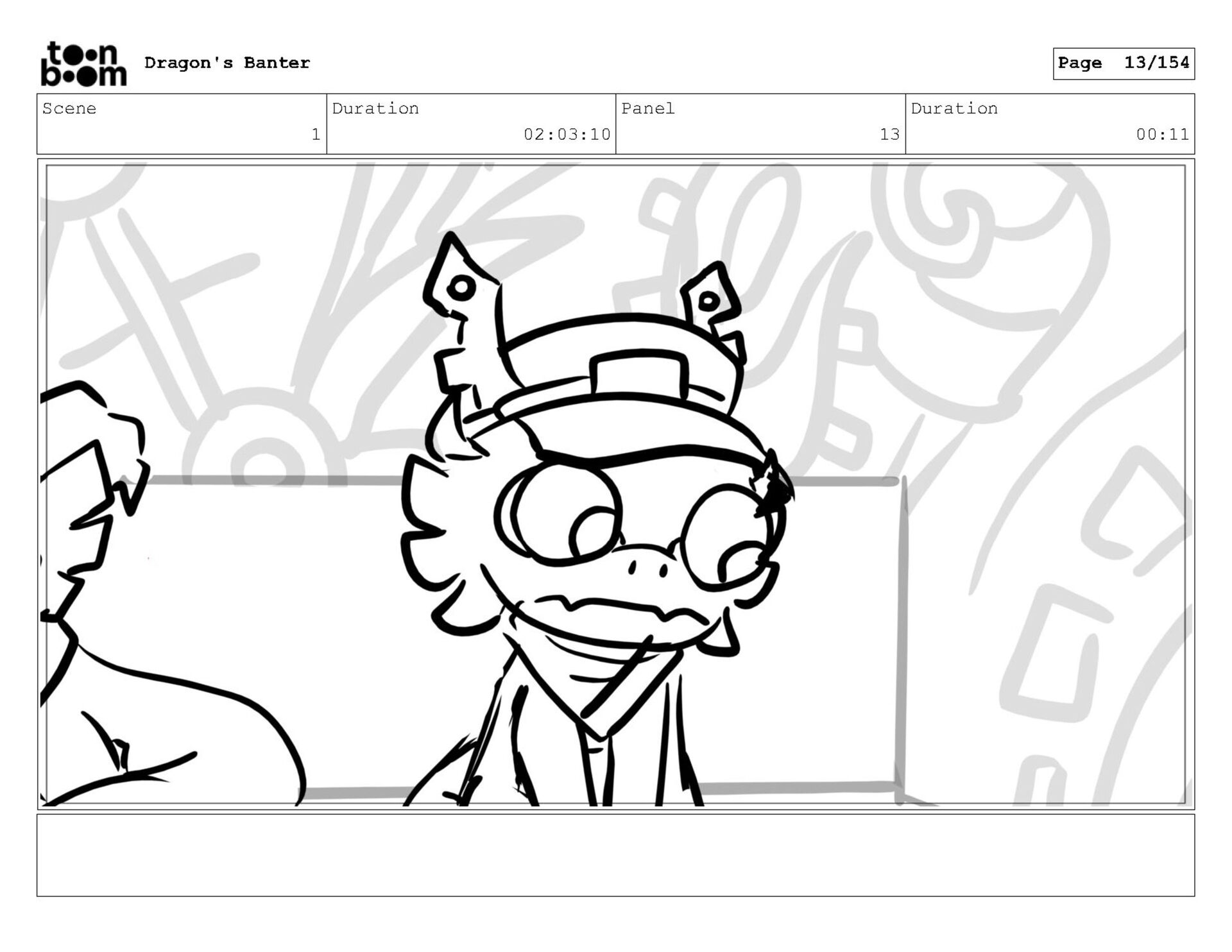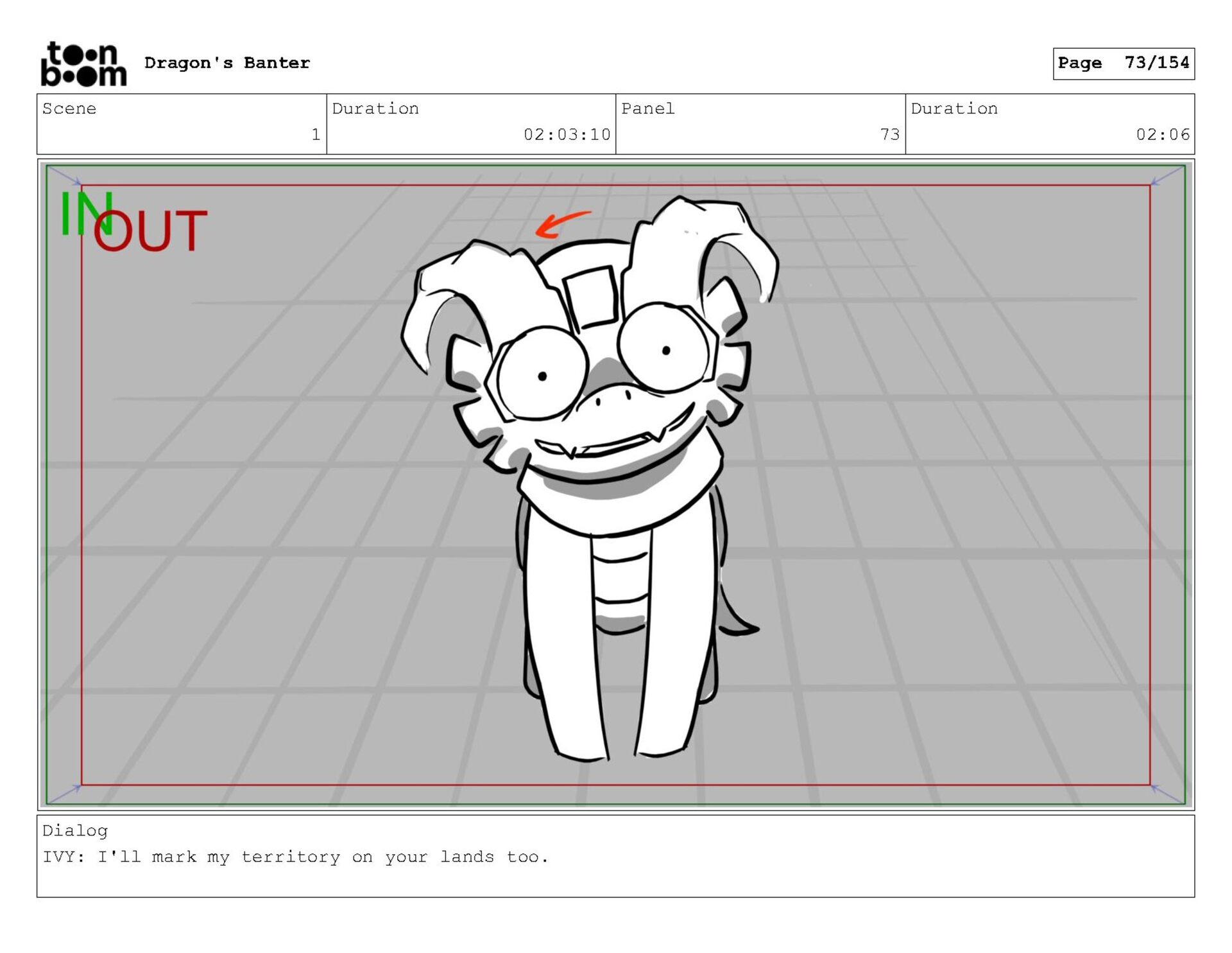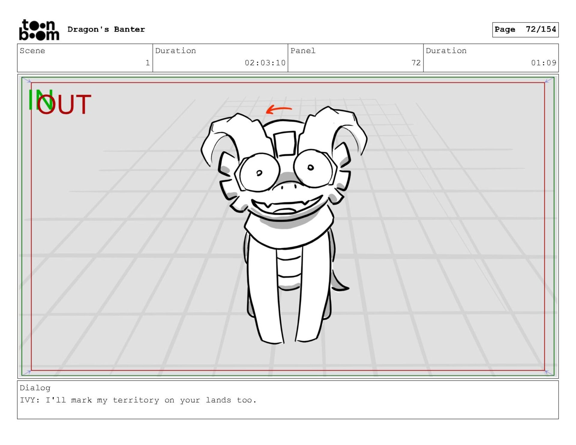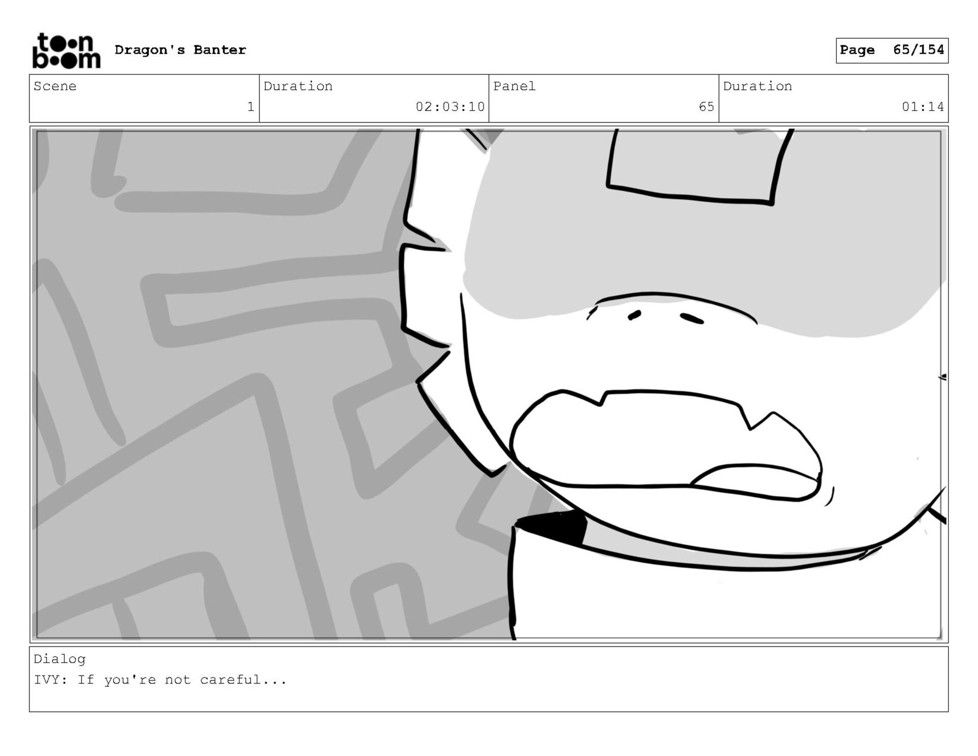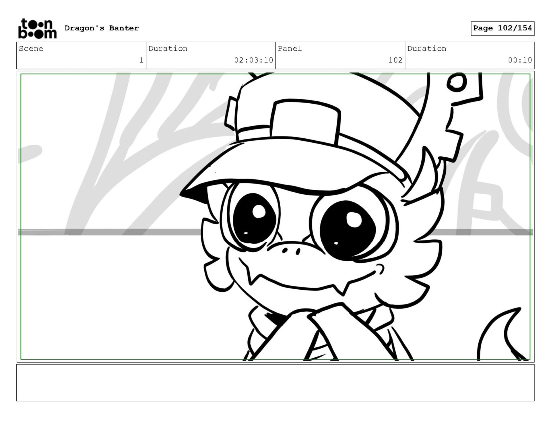 Storyboard produced for a University project, a comedic conversation exchange between two dragons about some fascinating markings on the walls. Featuring an original script and character designs.