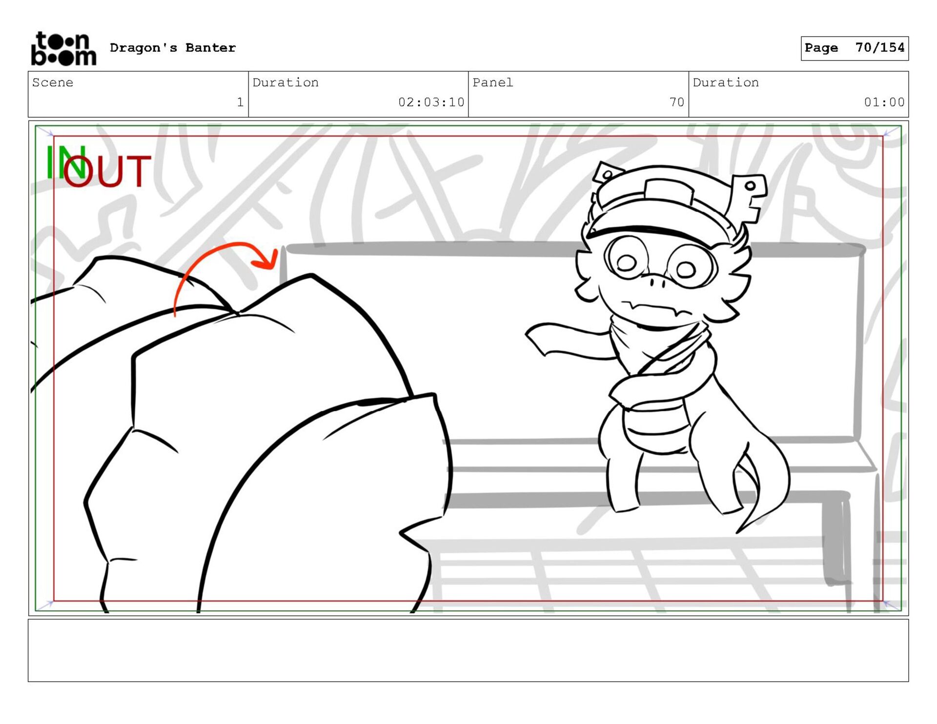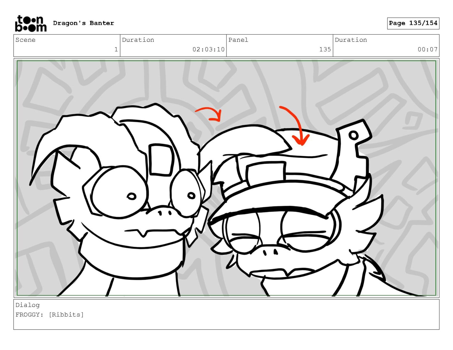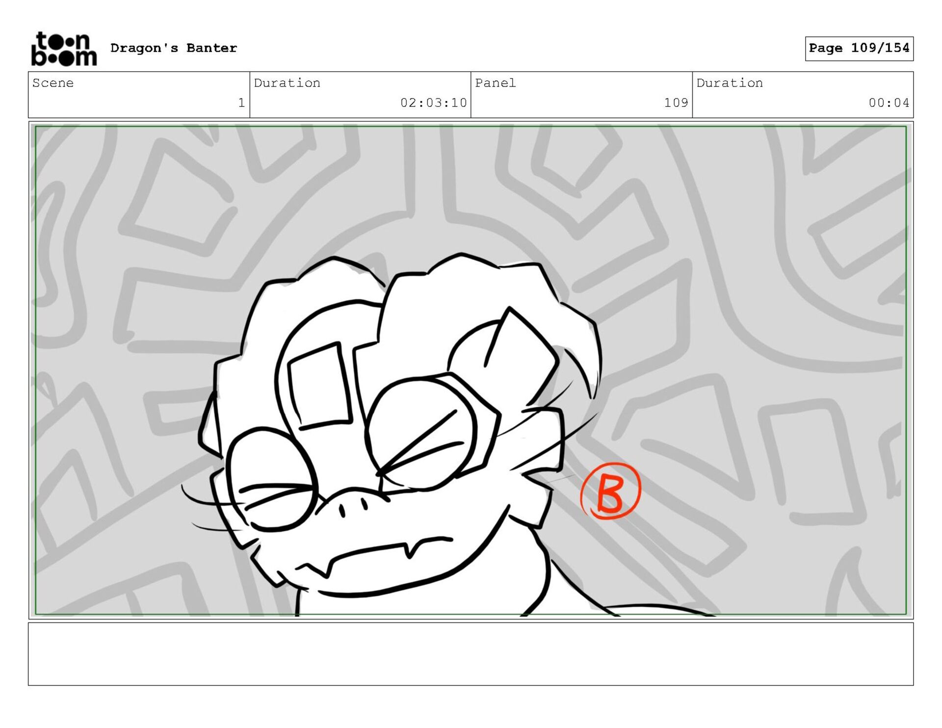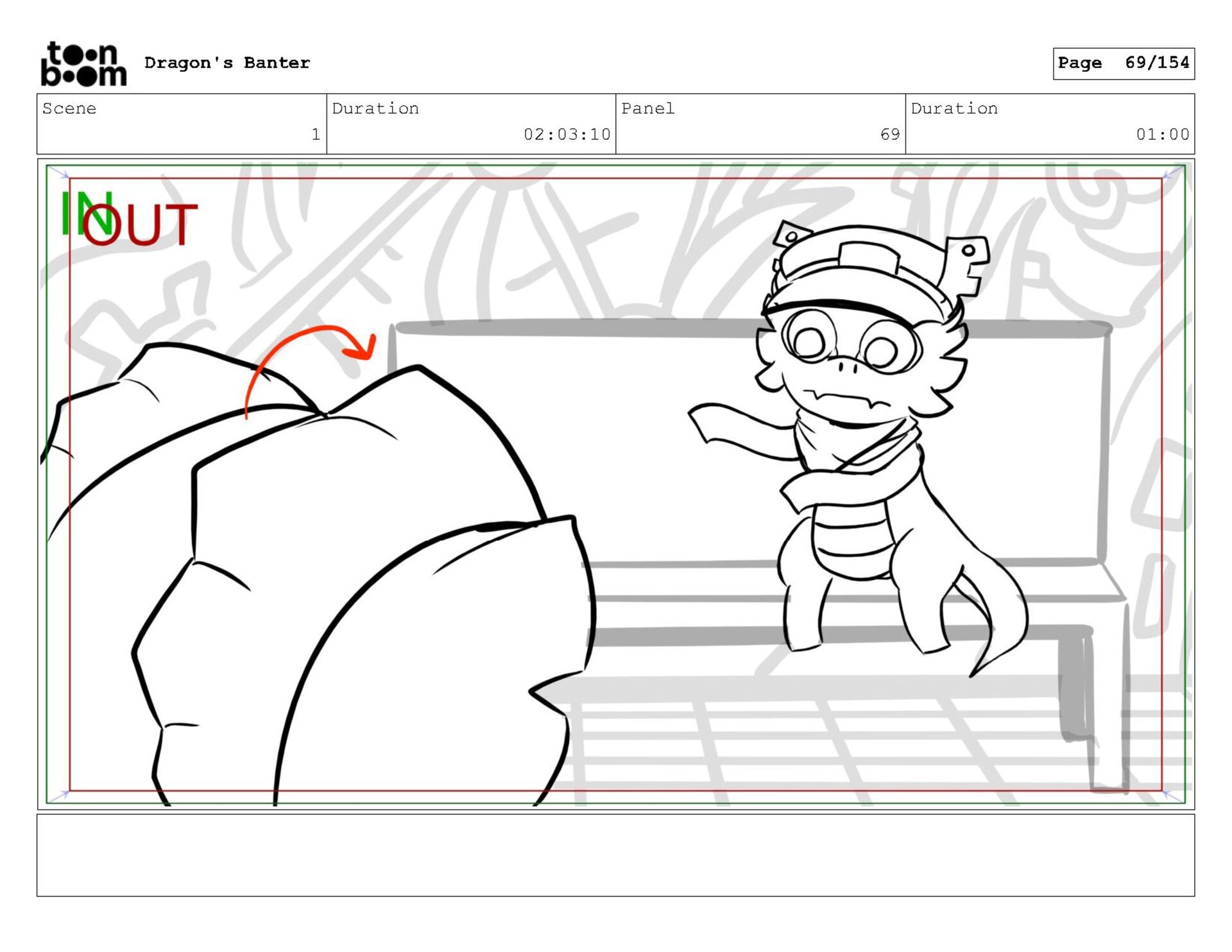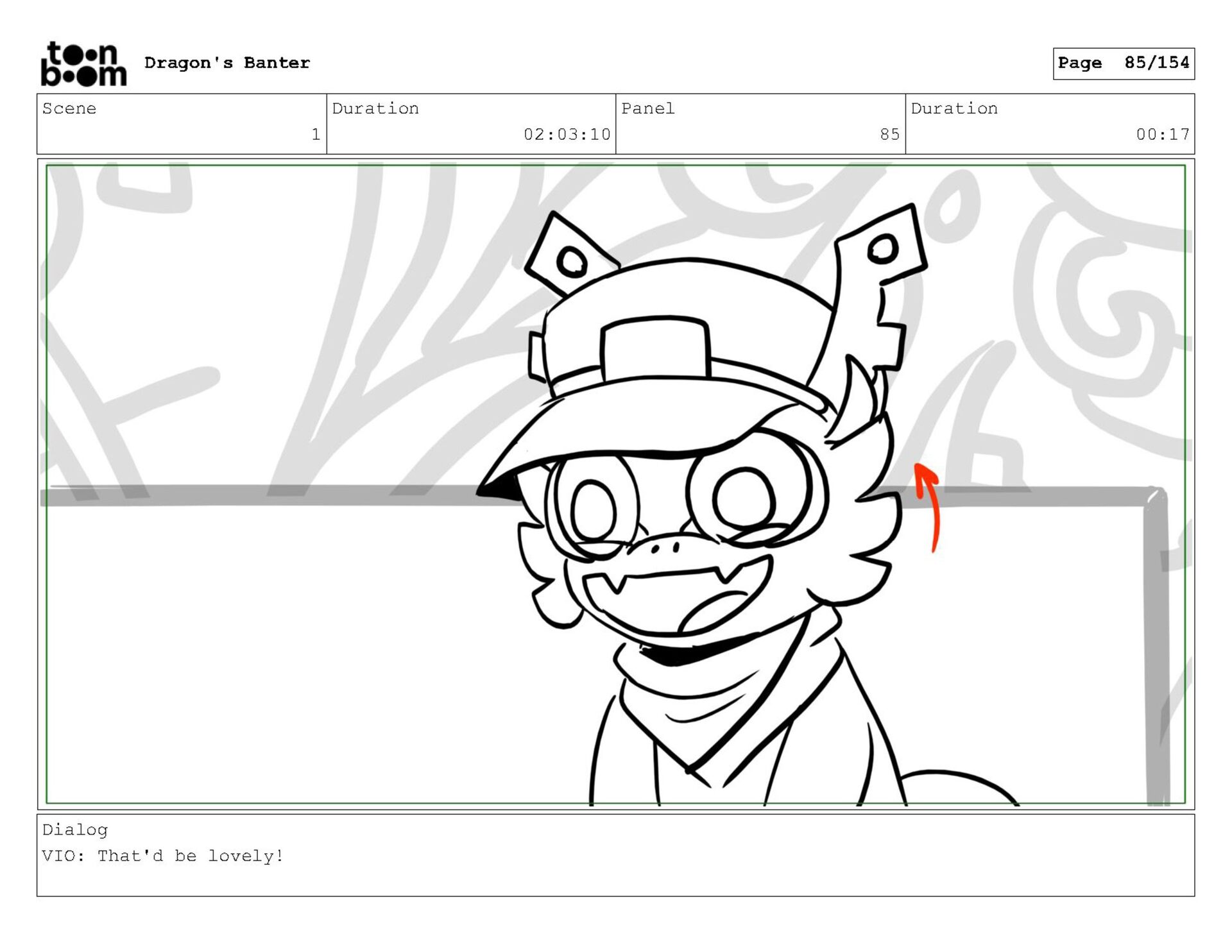 Storyboard produced for a University project, a comedic conversation exchange between two dragons about some fascinating markings on the walls. Featuring an original script and character designs.