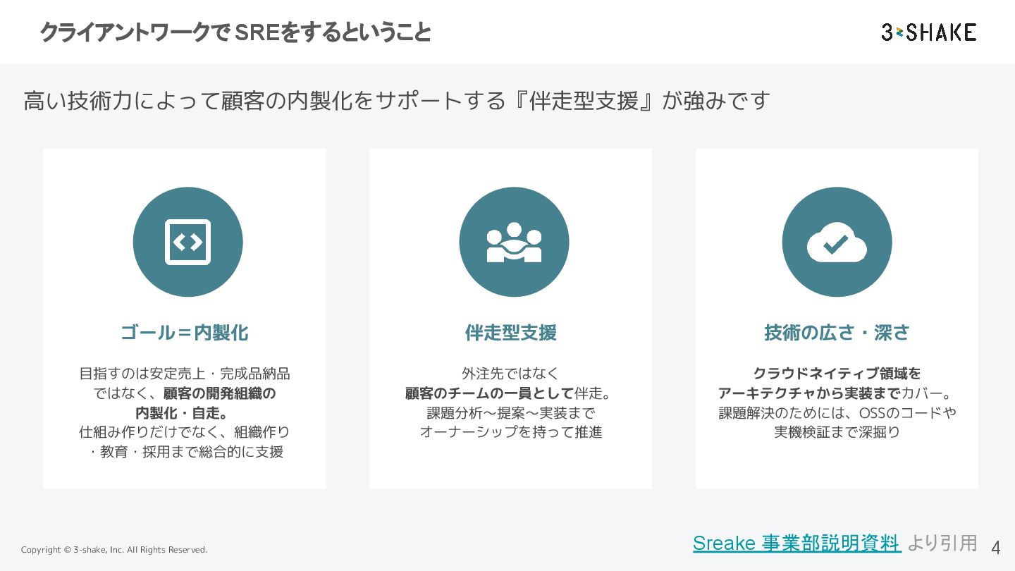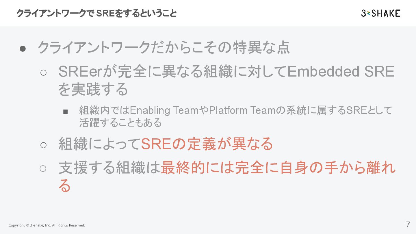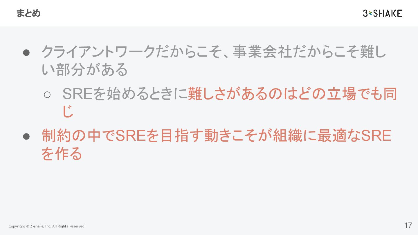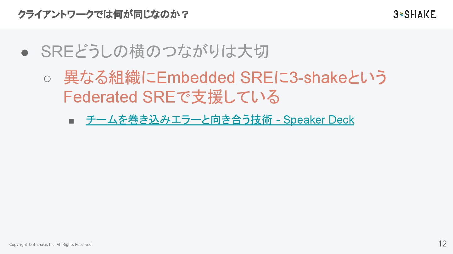 クライアントワークでSREを支援するという特殊な立ち位置だからこそ見える、クライアントワークでSREすることと事業会社でSREをすることの違いを話します。