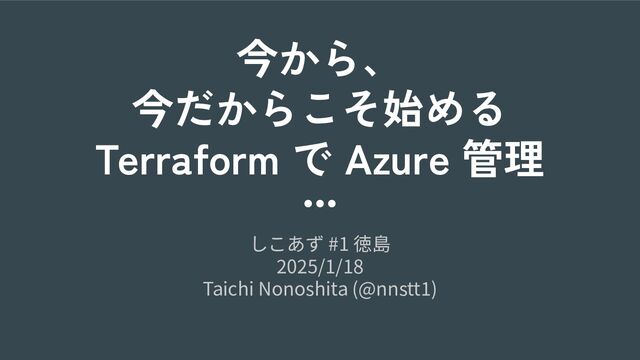 今から、 今だからこそ始める Terraform で Azure 管理 しこあず #1 徳島 2025/1/18