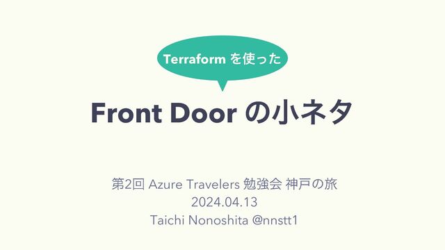 2 Azure Travelers 2024.04.13 Taichi Nonoshita @nnstt1 Front Door Terraform