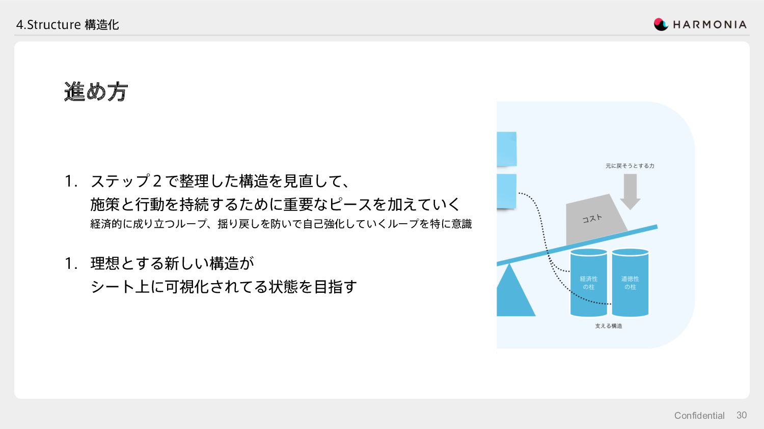 Confidential 30 4USVDUVSFߏԽ εςοϓ̎Ͱཧͨ͠ߏΛݟͯ͠ɺ ࢪࡦͱߦಈΛ࣋ଓ͢ΔͨΊʹॏཁͳϐʔεΛՃ͍͑ͯ͘ ܦࡁతʹΓཱͭϧʔϓɺ༳Γ͠Λ͍ͰࣗݾڧԽ͍ͯ͘͠ϧʔϓΛಛʹҙࣝ ཧͱ͢Δ৽͍͠ߏ͕ γʔτ্ʹՄࢹԽ͞ΕͯΔঢ়ଶΛࢦ͢