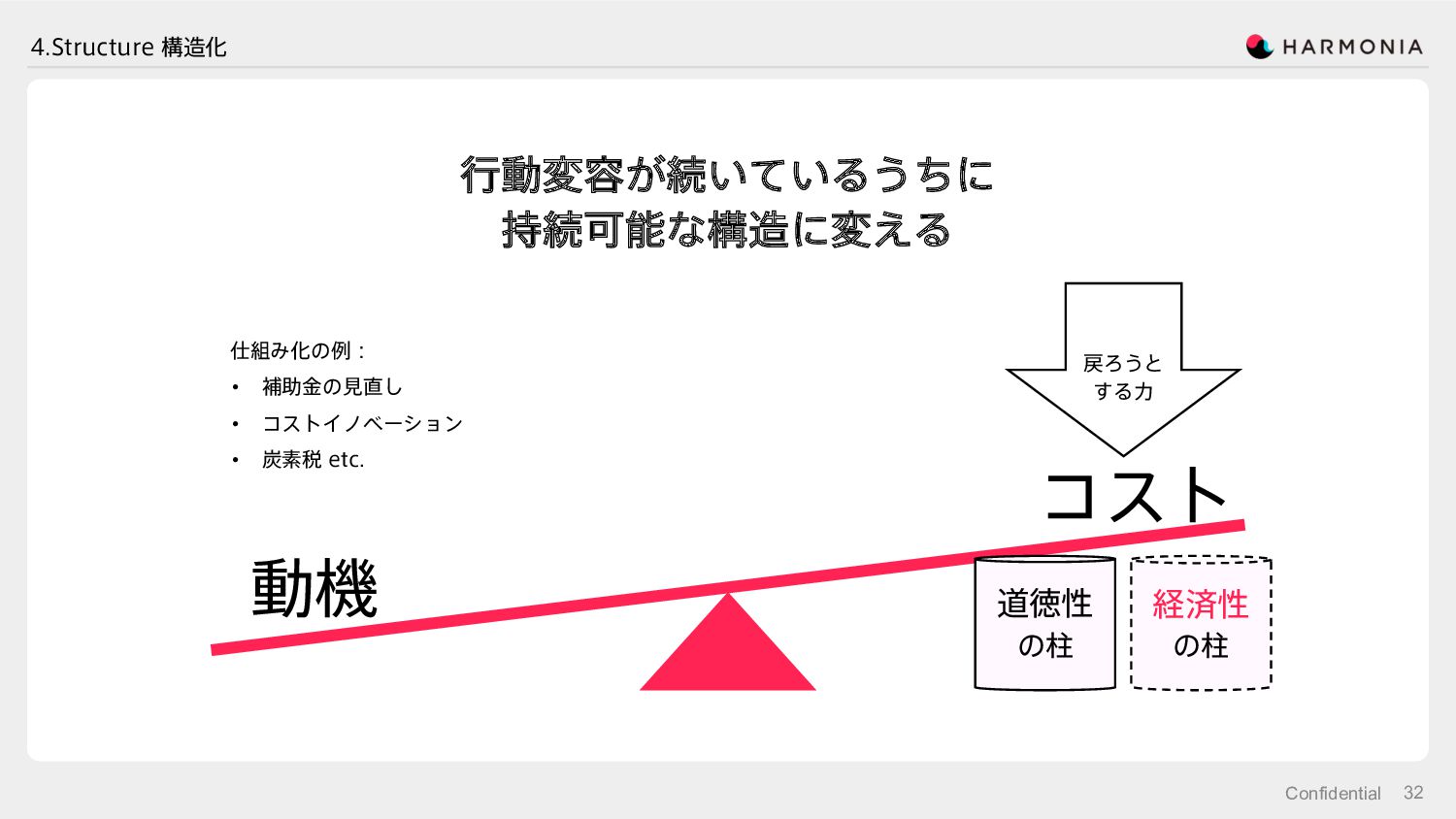 Confidential 31 4USVDUVSFߏԽ ߦಈม༰Λଓ͚Δ͜ͱ͍͠ ಈػ ίετ ಈػͷ࣋ଓ ྫɿश׳Խ ίετܰݮ࣋ଓ ྫɿϙΠϯτݪࢿ