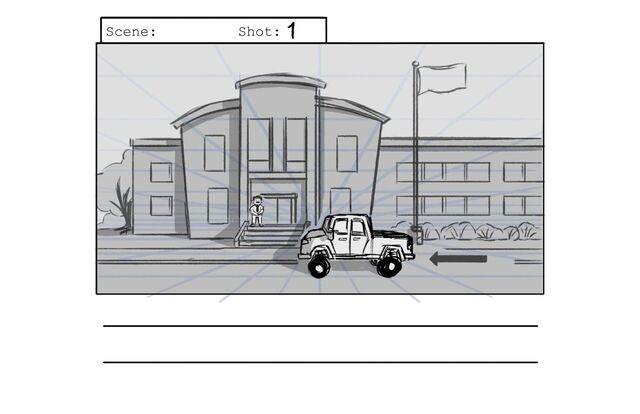 Perspective and staging for Storyboarding Class Project. As the principal shows the superintendent around school, Felix incites a food fight to spite his nagging teacher.