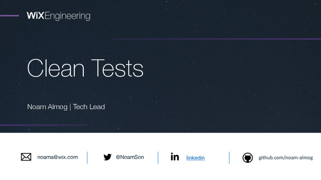 Clean Tests Noam Almog | Tech Lead linkedin github.com/noam-almog @NoamSon