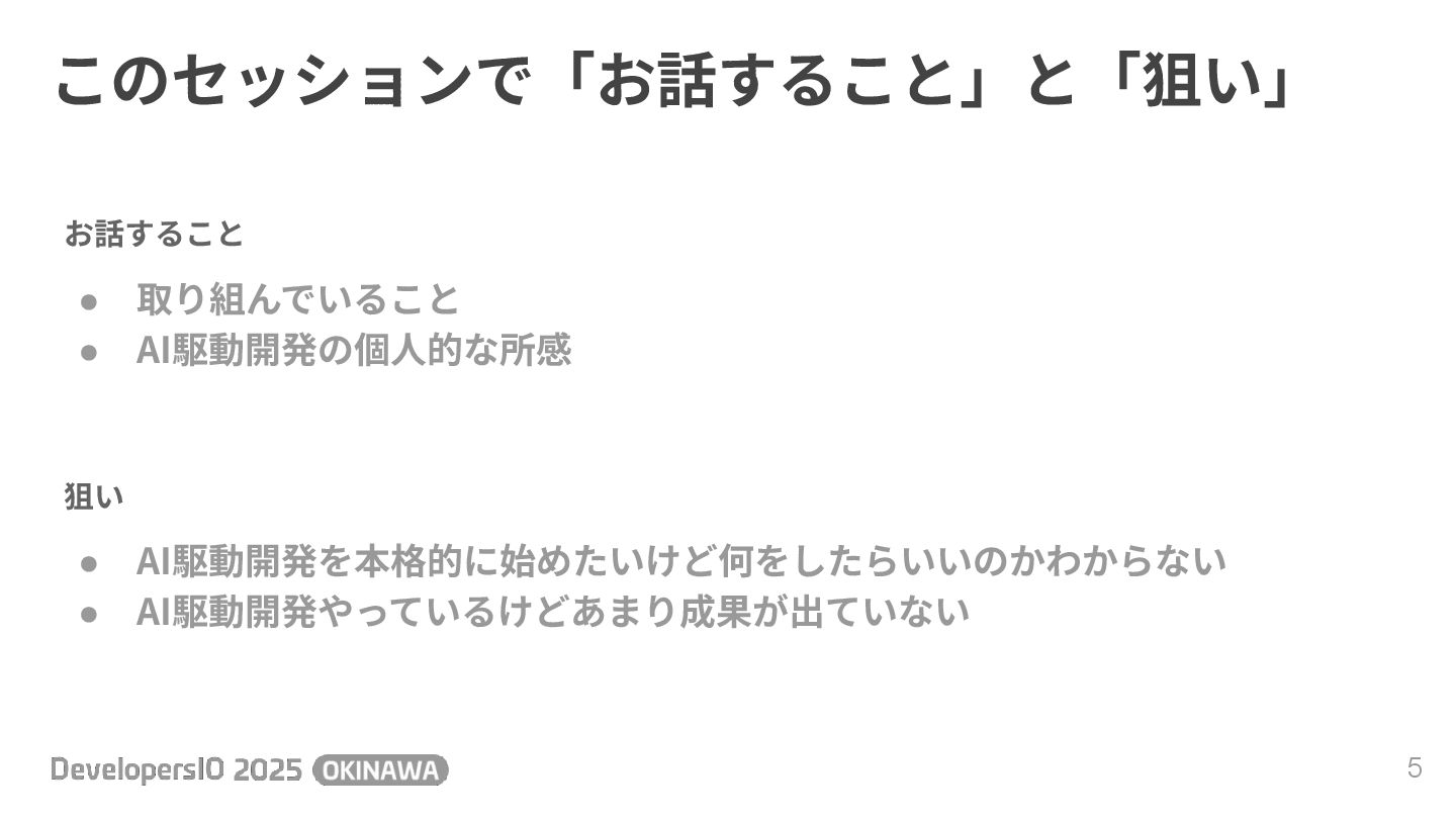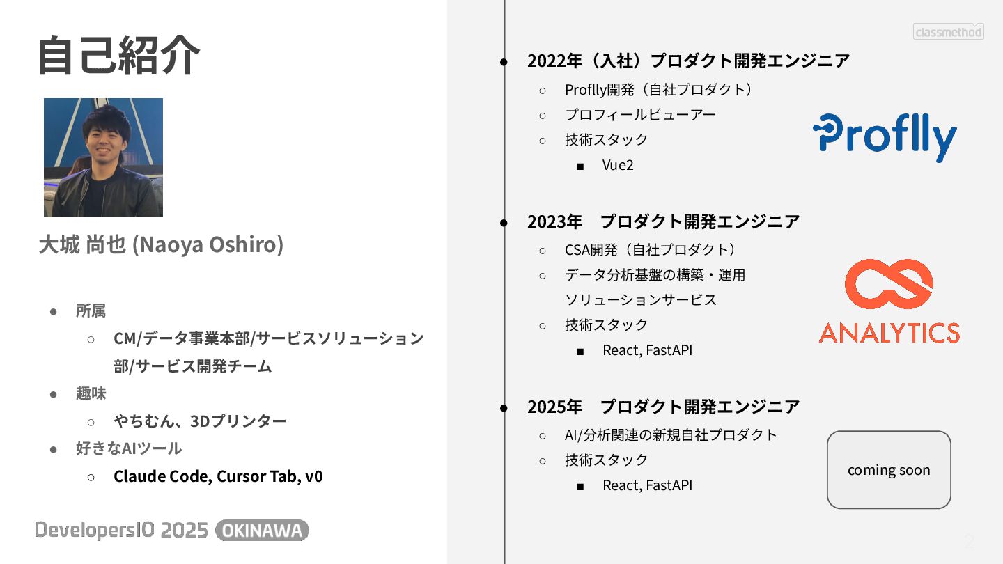 このスライドは 2025年9月12日(金)に開催された「DevelopersIO 2025 OKINAWA」で登壇した際のスライドです。