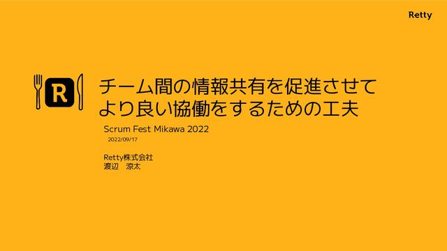チーム間の情報共有を促進させて より良い協働をするための工夫 Retty株式会社 渡辺 涼太 Scrum Fest Mikawa 2022 2022/09/17
