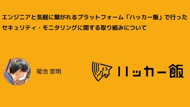エンジニアと気軽に繋がれるプラットフォーム「ハッカー飯」で行った セキュリティ・モニタリングに関する取り組みについて 菊池 宣明