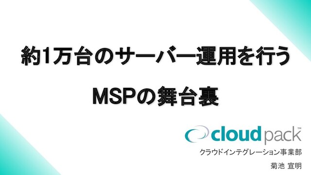 約1万台のサーバー運用を行う MSPの舞台裏 クラウドインテグレーション事業部 菊池 宣明