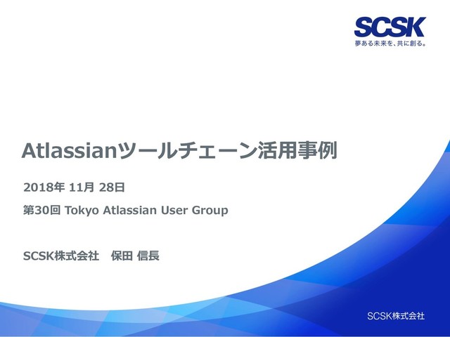 Atlassianツールチェーン活用事例 2018年 11月 28日 第30回 Tokyo Atlassian User Group SCSK株式会社