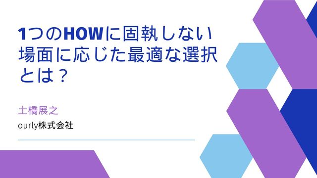 1つのHOWに固執しない 場面に応じた最適な選択 とは? 土橋展之 ourly株式会社