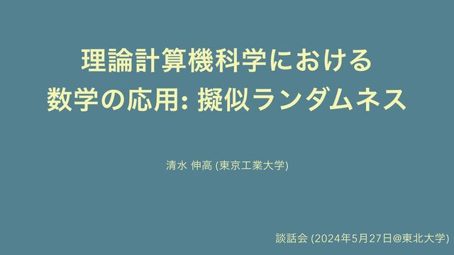 ཧܭࢉػՊֶʹ͓͚Δ ֶͷԠ༻: ٖࣅϥϯμϜωε ਗ਼ਫ ৳ߴ (౦ژۀେֶ) ஊձ (20245݄27@౦େֶ)