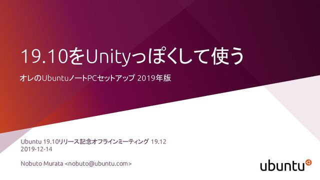 19.10をUnityっぽくして使う Ubuntu 19.10リリース記念オフラインミーティング 19.12 2019-12-14 Nobuto Murata <