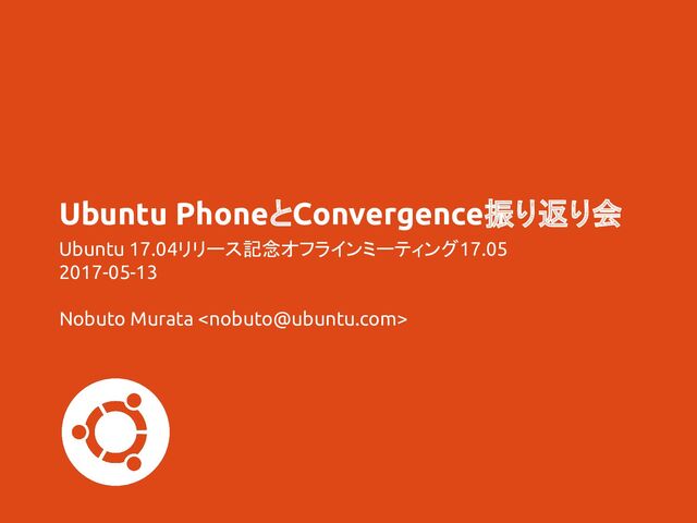 Ubuntu PhoneとConvergence振り返り会 Ubuntu 17.04リリース記念オフラインミーティング17.05 2017-05-13 Nobuto Murata <