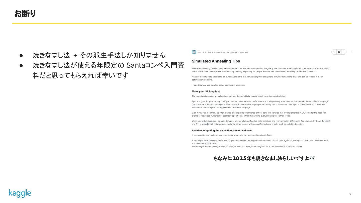 Santaコンペ入門資 料だと思ってもらえれば幸いです 7 お断り ちなみに2025年も焼きなまし法らしいですよ👀