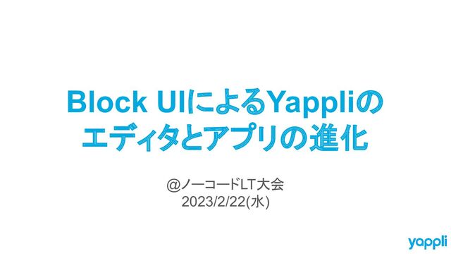 Block UIによるYappliの エディタとアプリの進化 @ノーコードLT大会 2023/2/22(水)