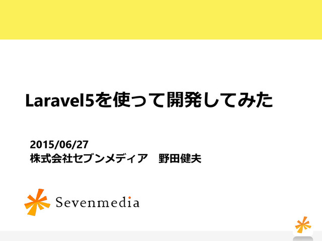 Laravel5を使って開発してみた 2015/06/27 株式会社セブンメディア 野田健夫