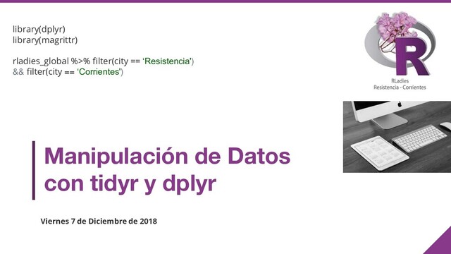 • El paquete dplyr fue desarrollado por Hadley Wickham y es un versión optimizada de su paquete plyr. • Proporciona una "gramática" (particularmente verbos) para la manipulación y operaciones con data frames. • Instalación: install.packages(“dplyr”) library(dplyr) install.packages(“nycflights13”) library(nycflights13)