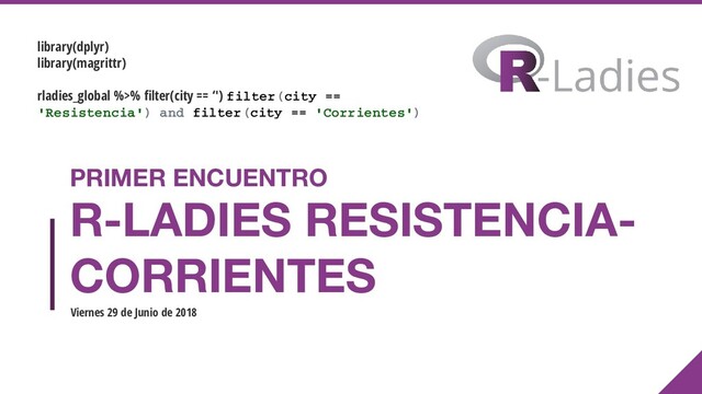 #RLadiesRciaCtes Capítulos en Argentina: • Rladies Buenos Aires • Rladies Mendoza • Rladies Santa Rosa • Rladies La Plata • RLadies Ushuaia • Rladies Santa Fe • Rladies Córdoba • Rladies Bariloche