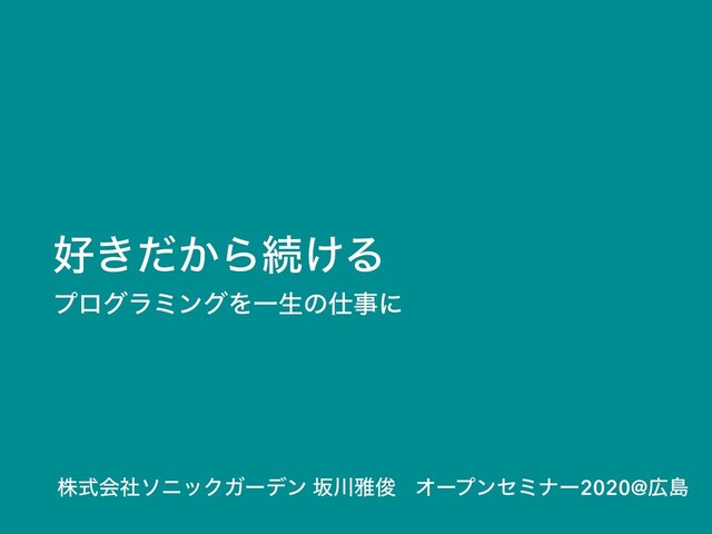 ͖͔ͩΒଓ͚Δ ϓϩάϥϛϯάΛҰੜͷࣄʹ גࣜձࣾιχοΫΨʔσϯ ࡔխढ़ Φʔϓϯηϛφʔ2020@ౡ