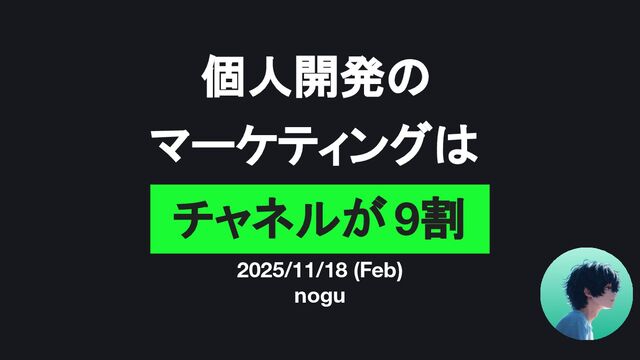 個人開発の 2025/11/18 (Feb) nogu チャネルが 9割 マーケティングは