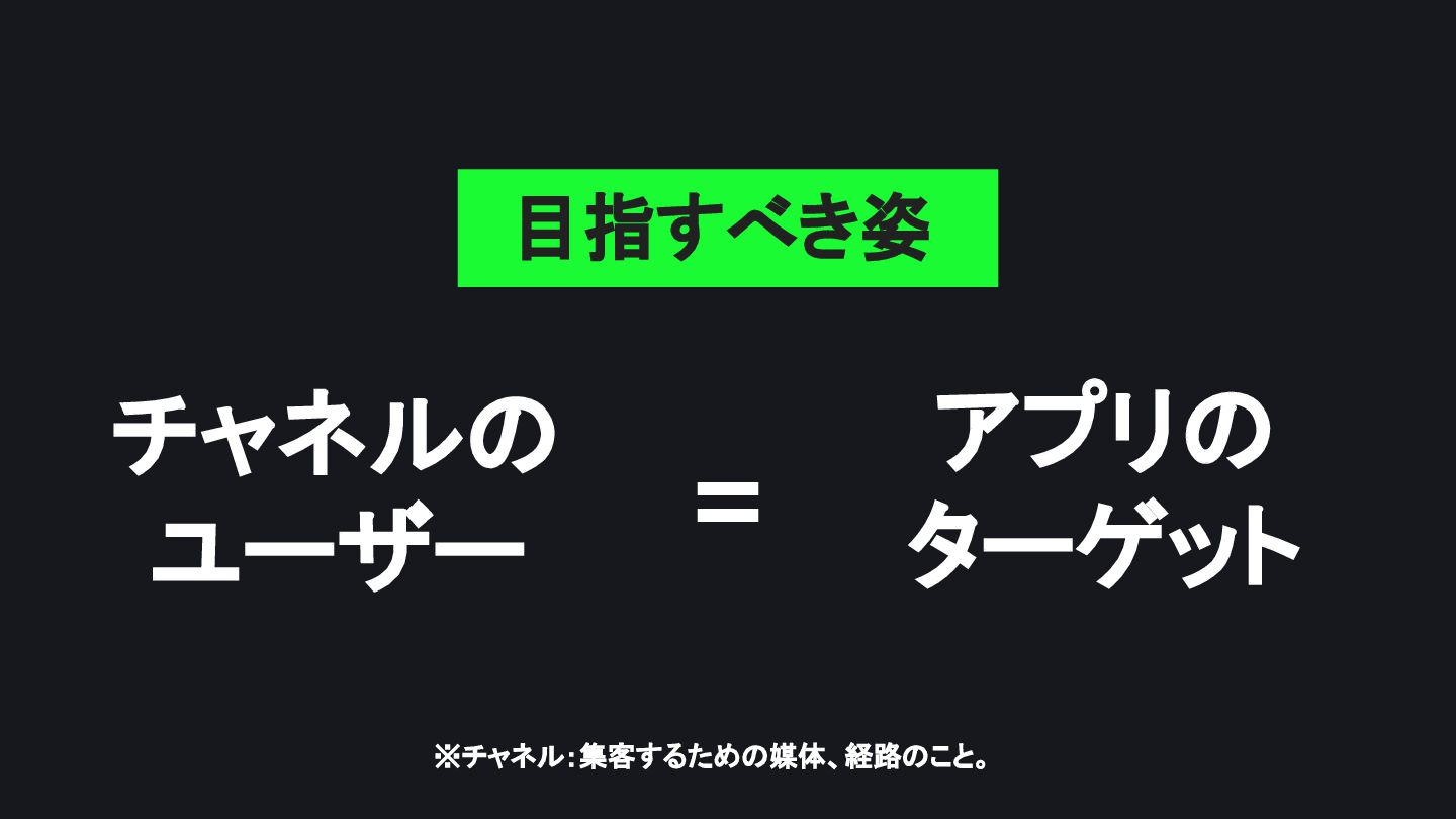 チャネルの ユーザー アプリの ターゲット = 目指すべき姿 ※チャネル:集客するための媒体、経路のこと。