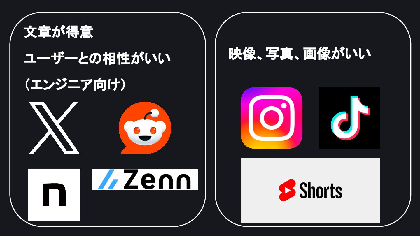 文章が得意 ユーザーとの相性がいい (エンジニア向け) 映像、写真、画像がいい