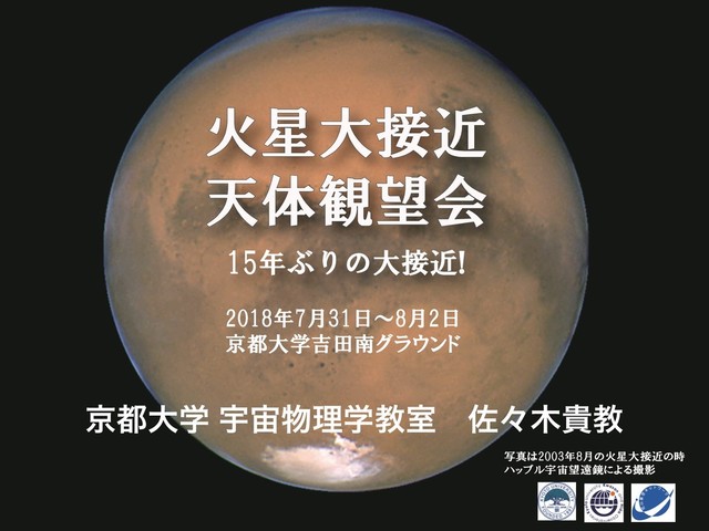 写真は2003年8月の火星大接近の時 ハッブル宇宙望遠鏡による撮影 2018年7月31日~8月2日 京都大学吉田南グラウンド 火星大接近 天体観望会 15年ぶりの大接近! ژେֶ Ӊཧֶڭࣨɹࠤʑوڭ