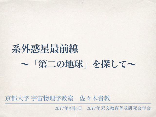 2017年天文教育普及研究会年会にて行った、系外惑星に関する講演の発表資料です。