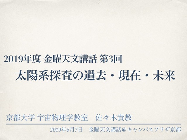 金曜天文講話で太陽系探査について講演を行ったときの資料です。