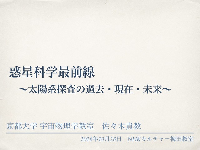 201810݄28ɹNHKΧϧνϟʔകాڭࣨ Պֶ࠷લઢ ɹʙଠཅܥ୳ࠪͷաڈɾݱࡏɾະདྷʙ ژେֶ Ӊཧֶڭࣨɹࠤʑوڭ